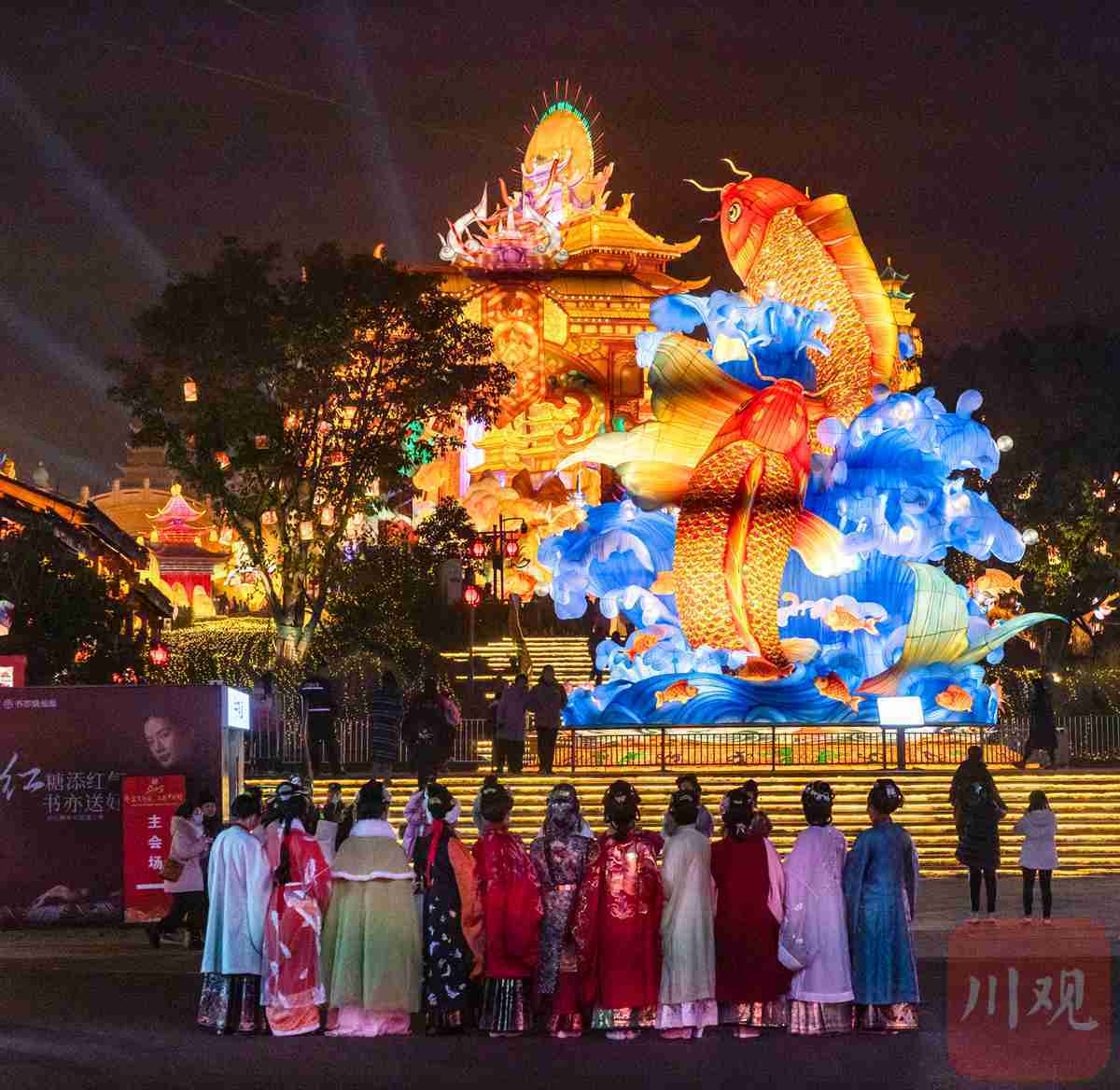 本次灯会,丝架造型、捆扎技艺等传统工艺大放异彩,12组特大型灯组、7组大型灯组、200余组中小型灯组,以及全国各地国家级灯会灯彩非遗代表性项目的展品交相辉映,为八方游客献上一场璀璨绚烂的视觉盛宴。