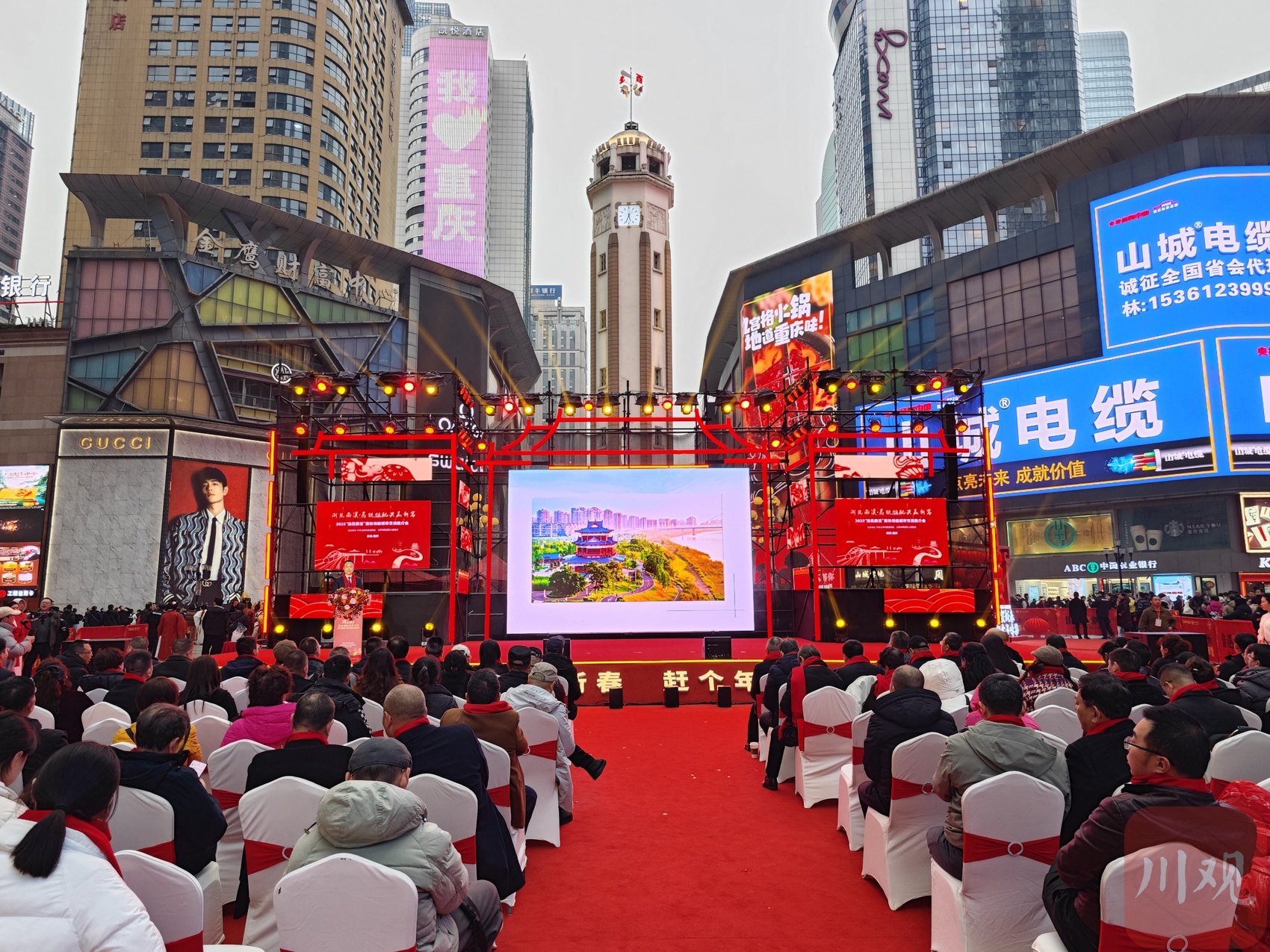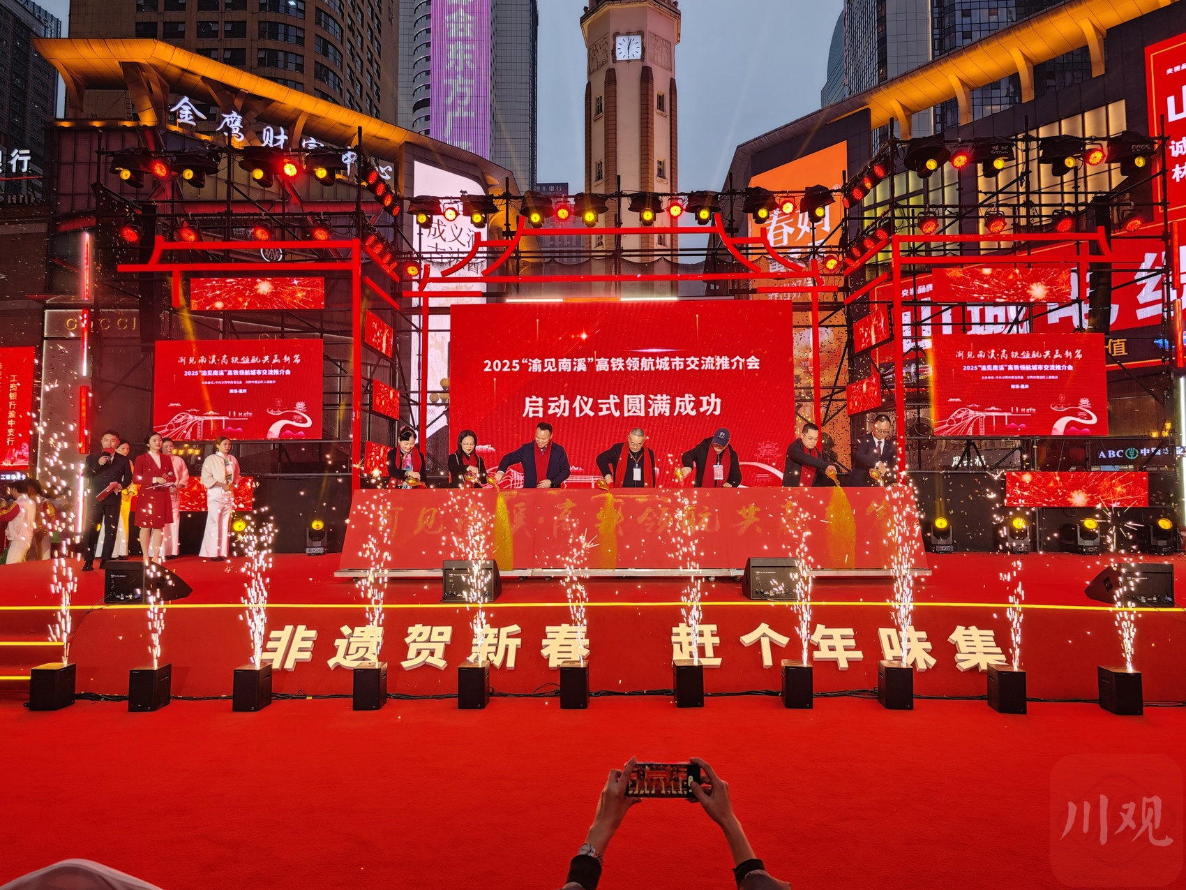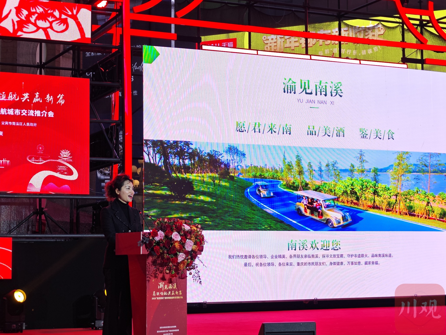 川渝一家亲,宜宾、重庆同饮一江水。1月17日,宜宾市南溪区2025“渝见南溪”高铁领航城市交流推介活动在重庆市渝中区解放碑步行街启动。