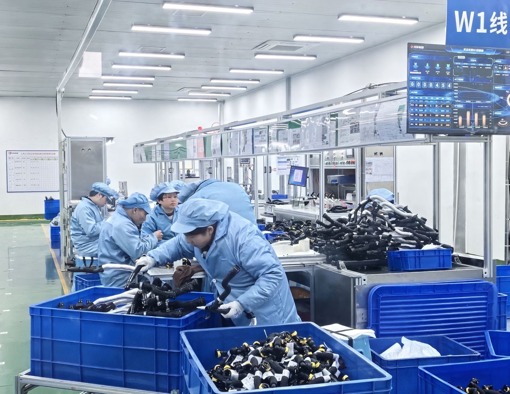 “近年,我们持续拓展业务范围。”来到川环科技四分厂(105车间),公司常务副总经理王宗武首先递来一句话。穿过105车间参观过道,透过车间玻璃窗可见,挤出、自动弯管成型、天窗排水管装配等工序一片忙碌,身着蓝色工装的工人,手边摆满一箩筐橡胶管。走出过道尽头,数据中心服务器液冷管等生产厂房矗立,那是川环科技新建成的生产线。