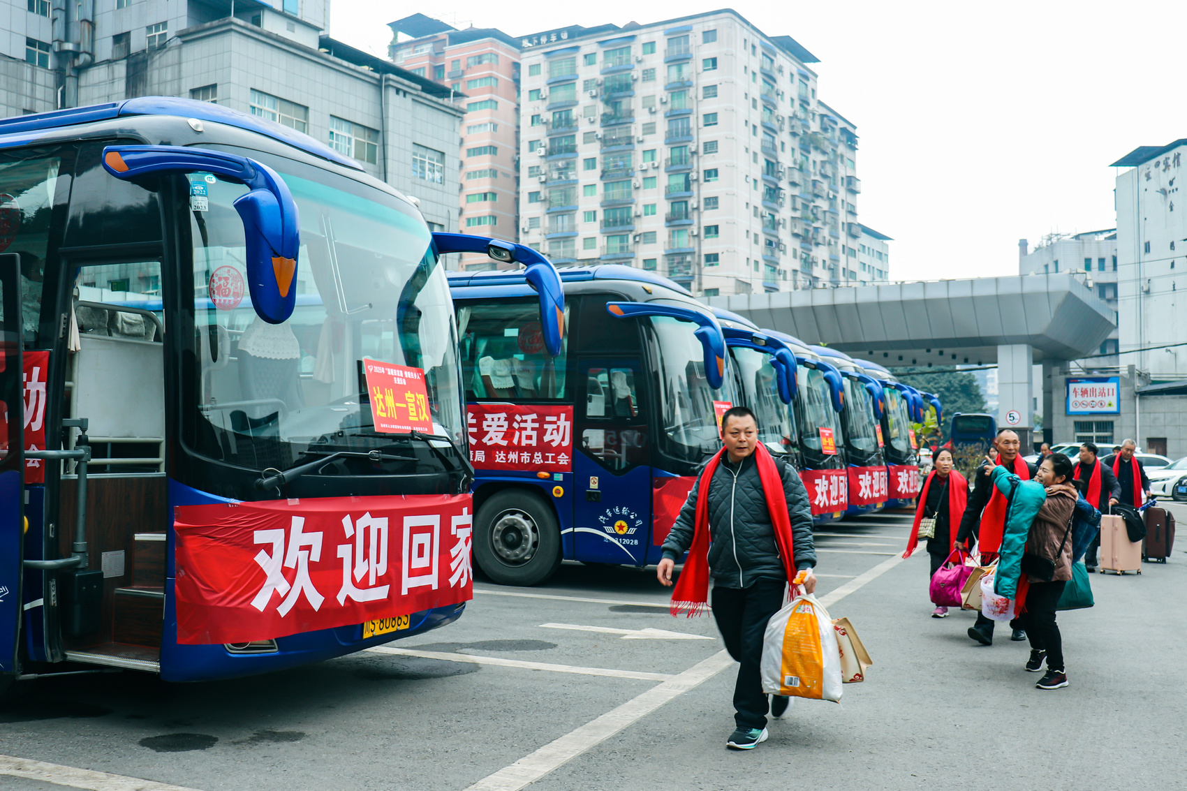 达州市为返乡人员提供的接驳车上,“欢迎回家”字样特别温暖人心。