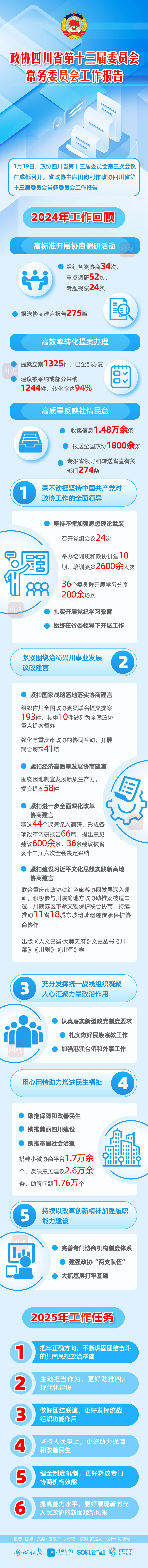 25组数据,展现了过去一年政协工作的辉煌成就,读了政协报告,让人心潮澎湃,四川政协为兴川战略发展建言献策,功不可没,期待在新的一年里,不负人民重托,再创辉煌。