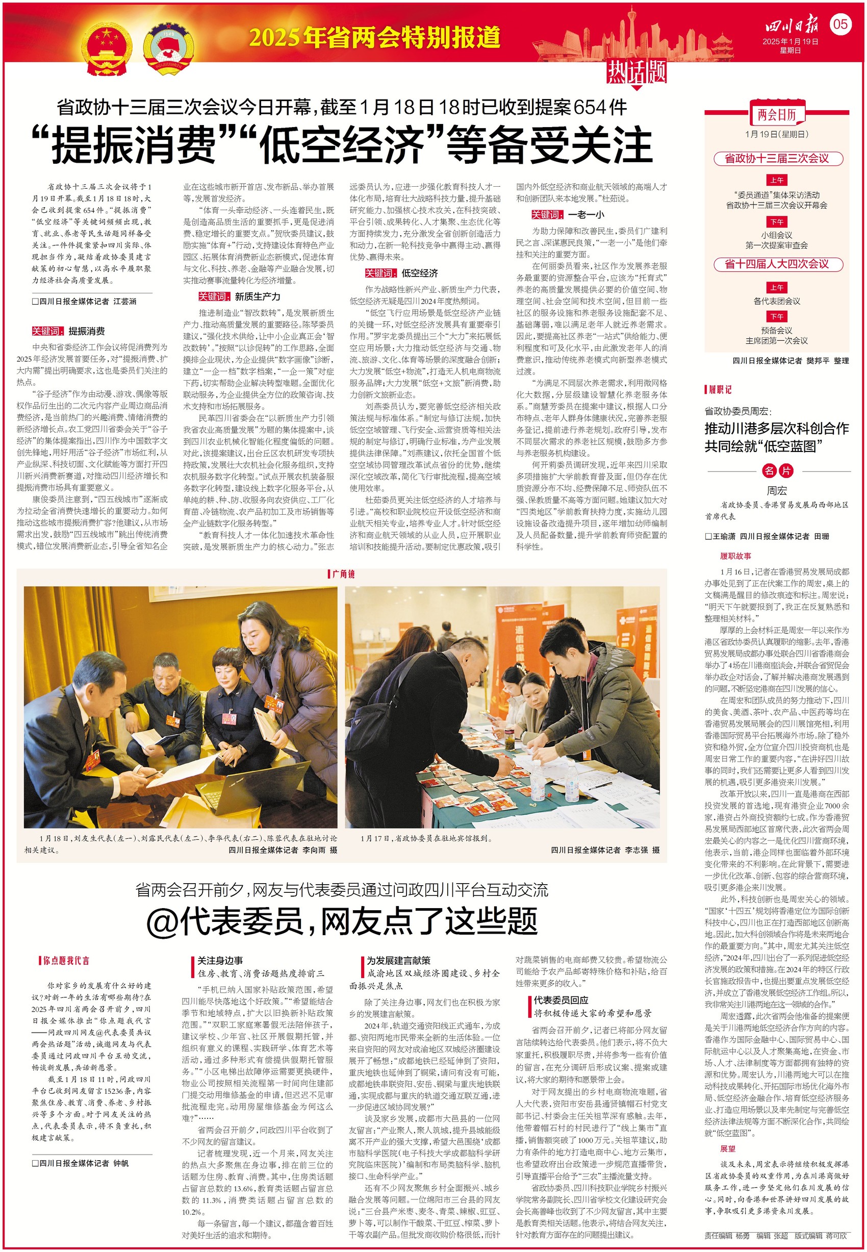 省政协十三届三次会议于今日开幕。“提振消费”“一老一小”等是委员们关注的热点。提振消费方面,委员们提交了“用好用活‘谷子经济’”等提案;一老一小方面,委员在提案中建议,利用微网格化大数据,分层级建设智慧化养老服务体系。抢先看提案,关注今日五版。