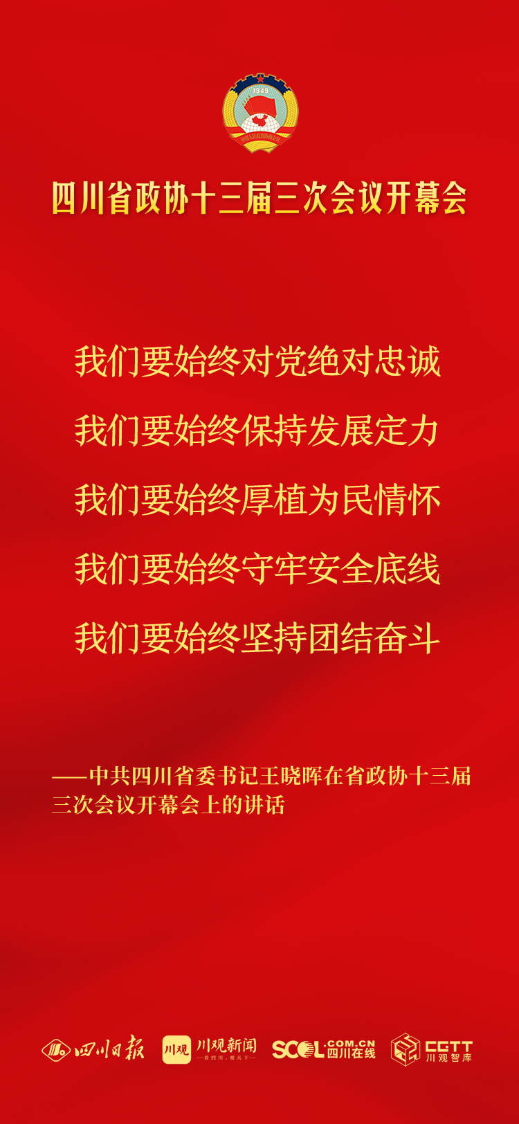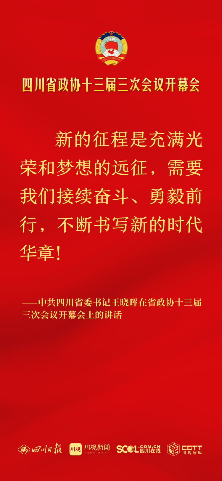 2025年,四川站在了新的历史起点上,面临着诸多机遇与挑战,前景令人充满期待。我们必将继续心往一处想、劲往一处使,以满腔的热情和不懈的努力,携手拼搏。