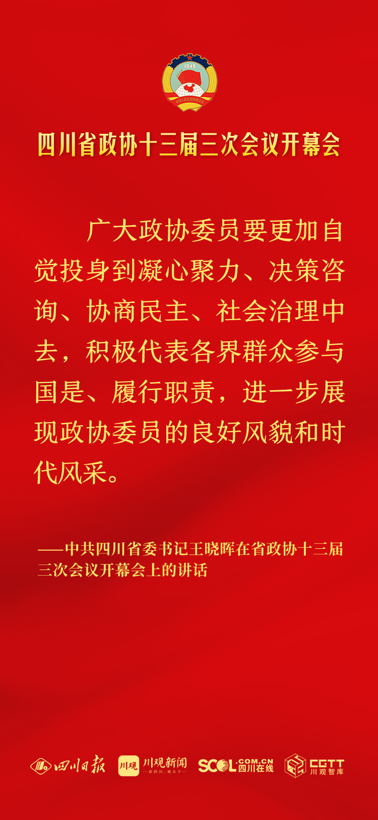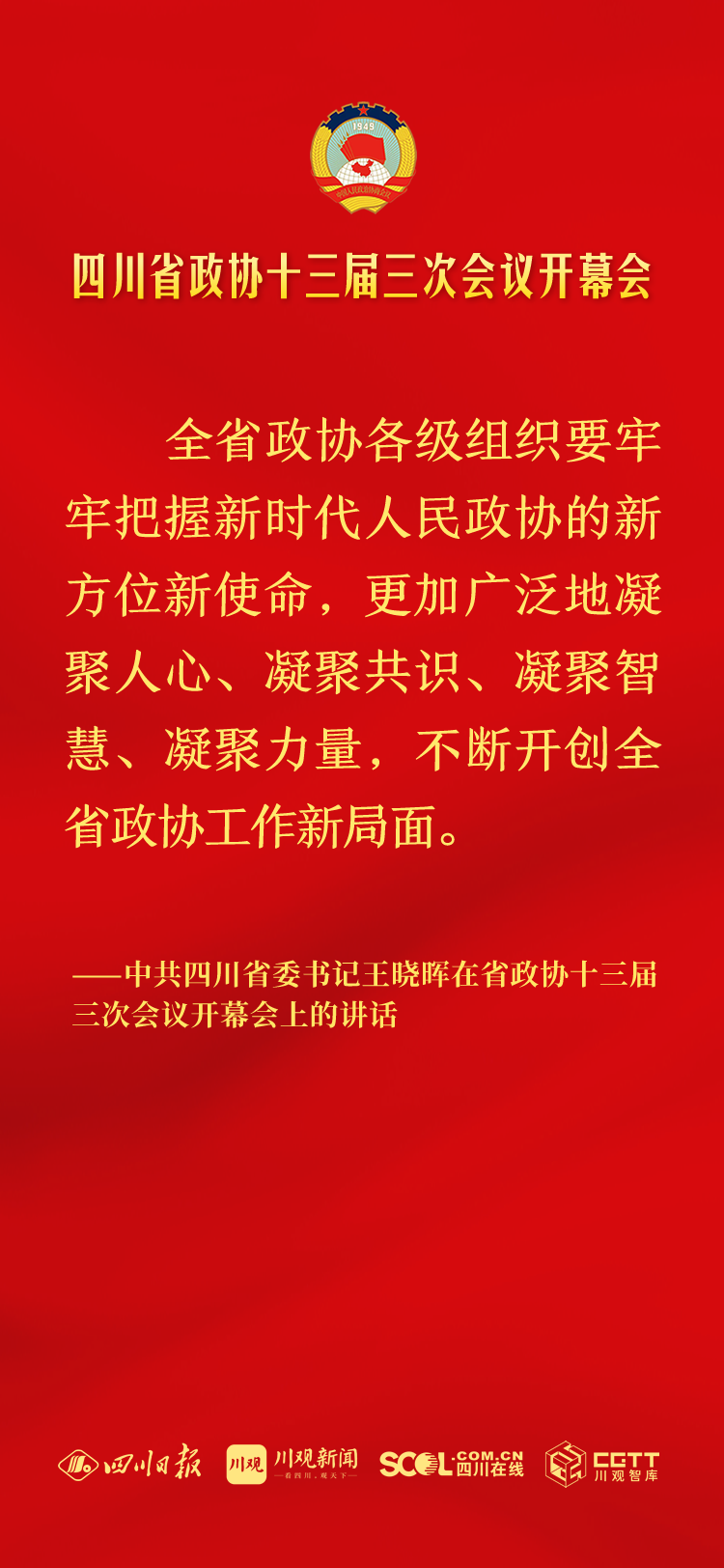1月19日上午,政协四川省第十三届委员会第三次会议在成都开幕,中共四川省委书记王晓晖讲话。
