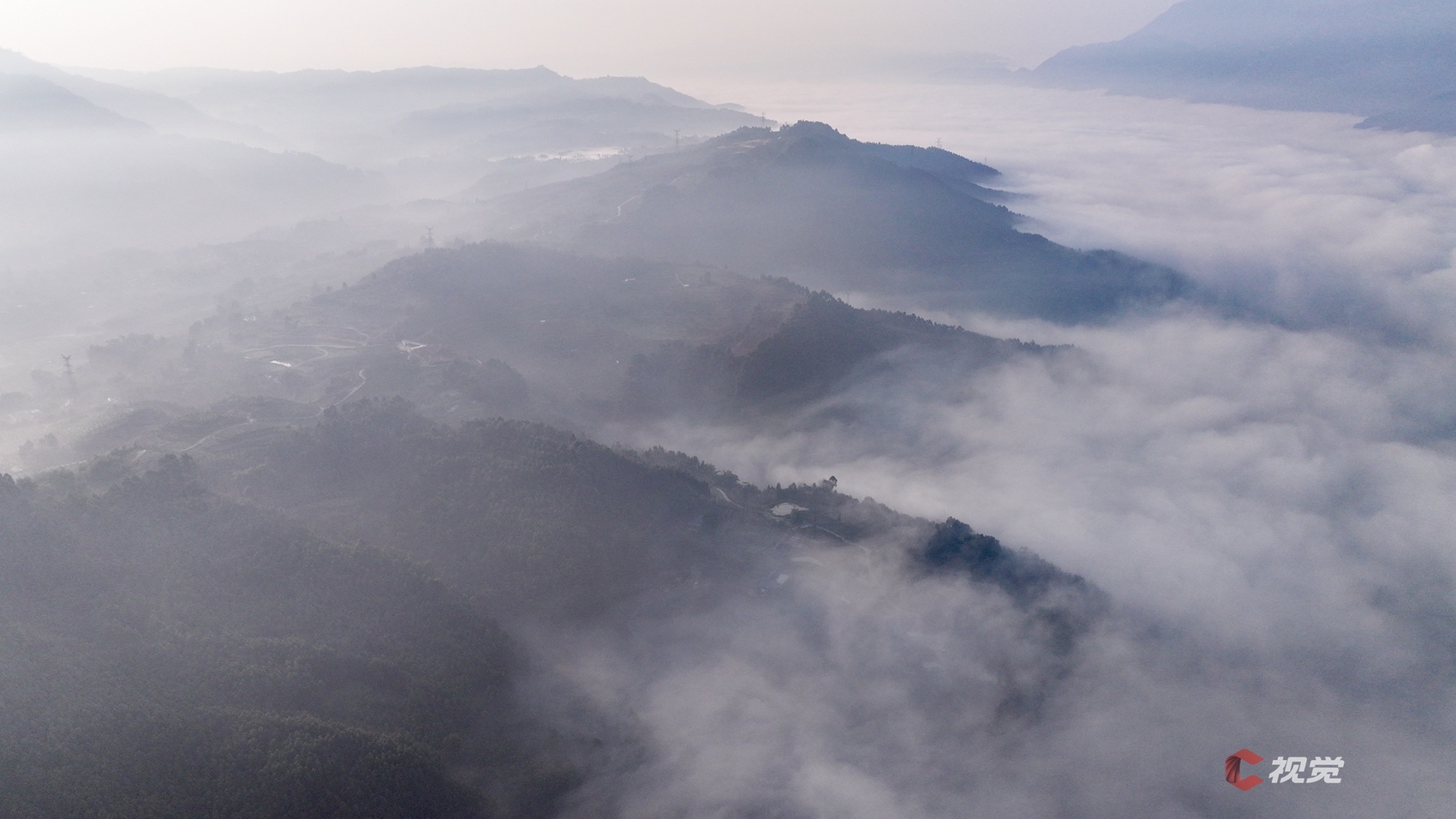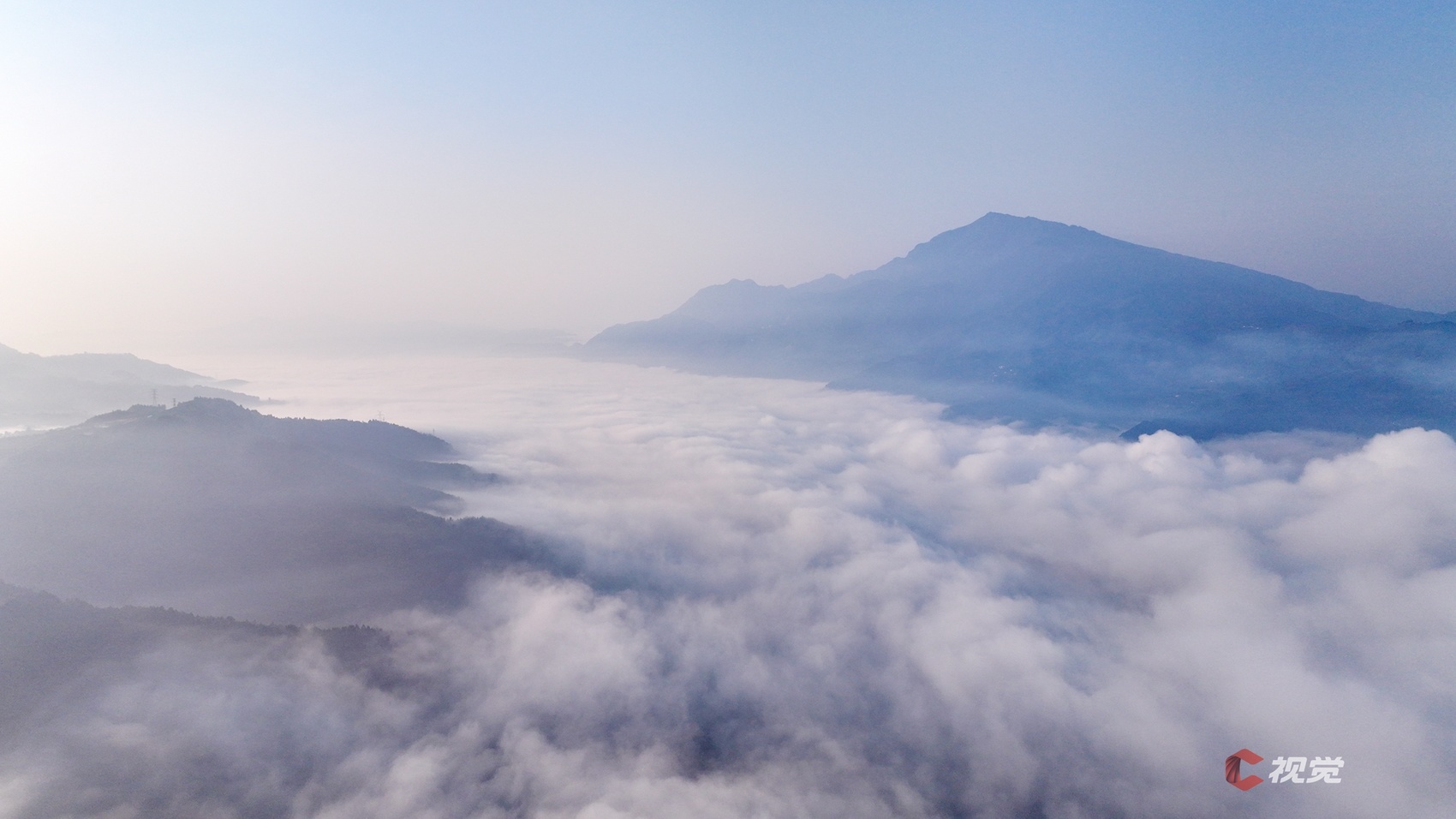 1月19日清晨,乐山市沙湾城区云雾缭绕,美女峰山下,浩瀚云海翻涌宛如波涛,站在高处俯瞰,错落有致的城市建筑在云海中若隐若现,一幅大美冬日晨景画卷铺展开来。