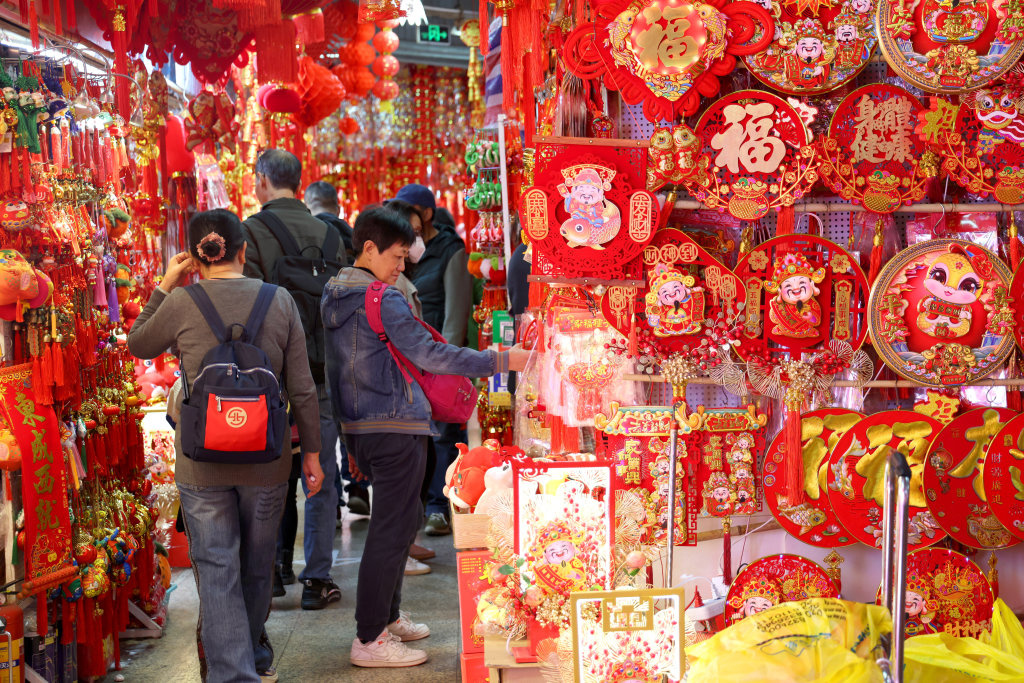 1月20日,市民在广州市一德路市场选购春节饰品。