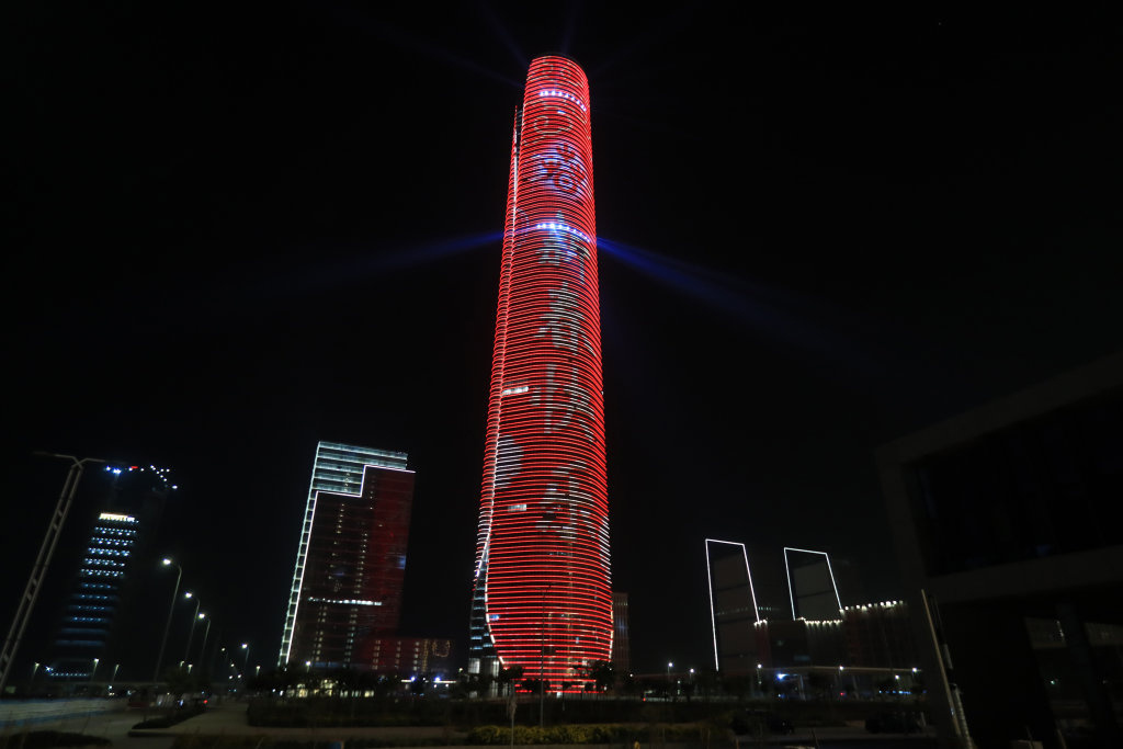 “非洲第一高楼”亮灯迎新春