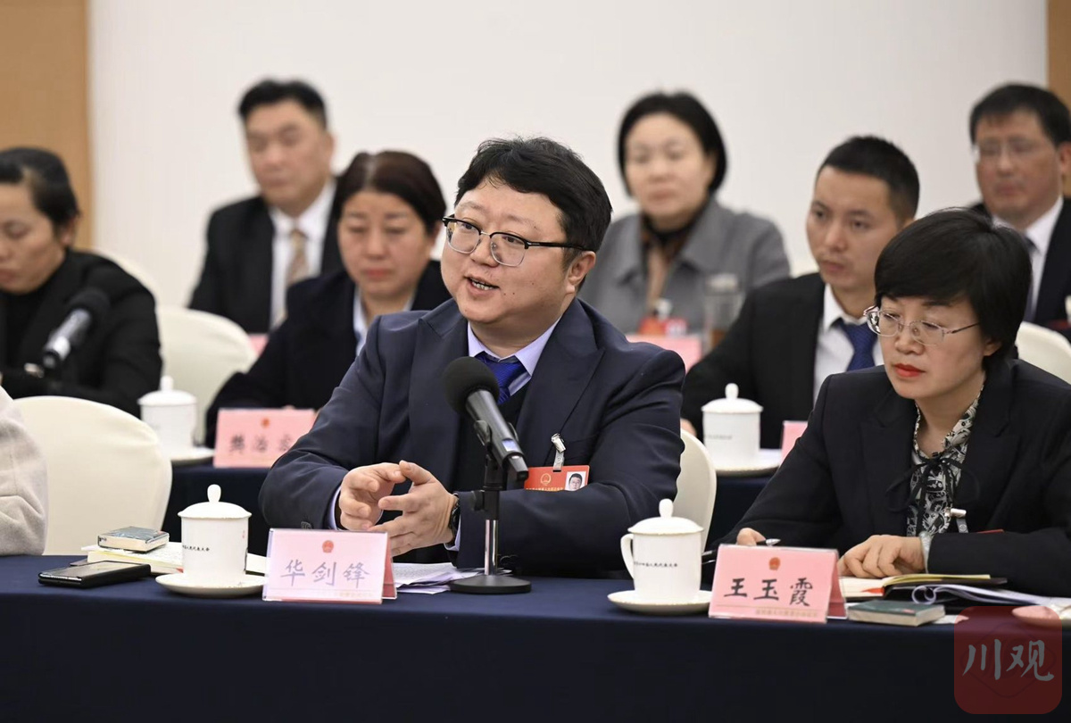 四川新能源汽车创新中心有限公司董事长华剑锋正在宜宾代表团发言。杨树 摄