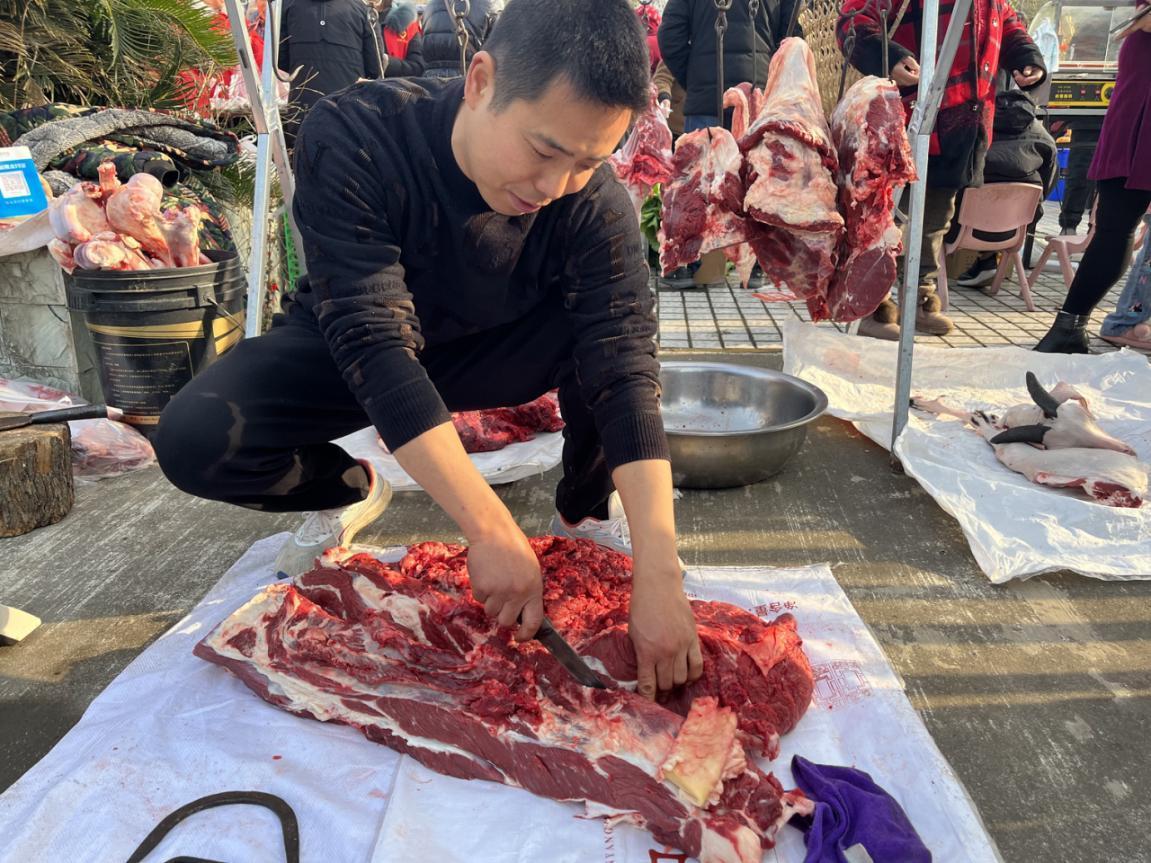“我们家今天逛集市就是奔着这个土猪肉来的,又嫩又香,我买了一些排骨和猪耳朵,打算年夜饭的时候做,全家人都爱吃!”市民冉连芬说。