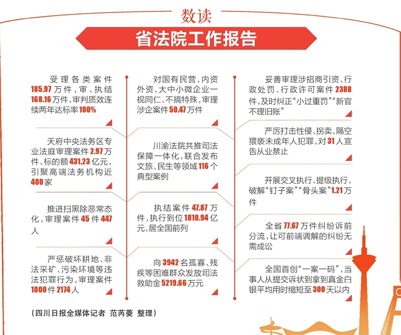 精准解读法院报告,切实以审判工作现代化支撑和服务四川现代化建设,为四川经济社会高质量发展保驾护航。