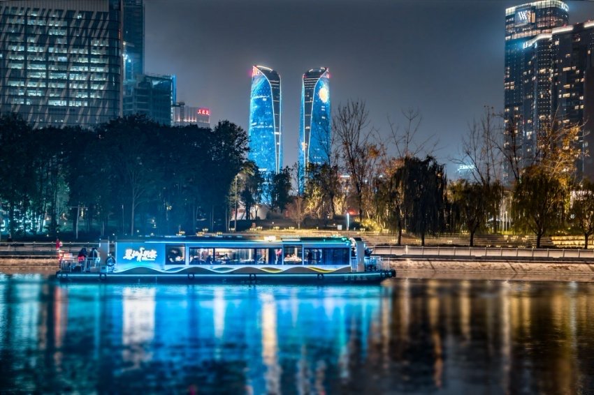 据悉,夜游锦江城南段的水上游船线路覆盖了江滩公园至交子人行桥·莲桥区域,全长约6.5公里。线路每日提供5班常态化定点发船班次,包括日游两班和夜游三班,整个体验时长约60分钟。