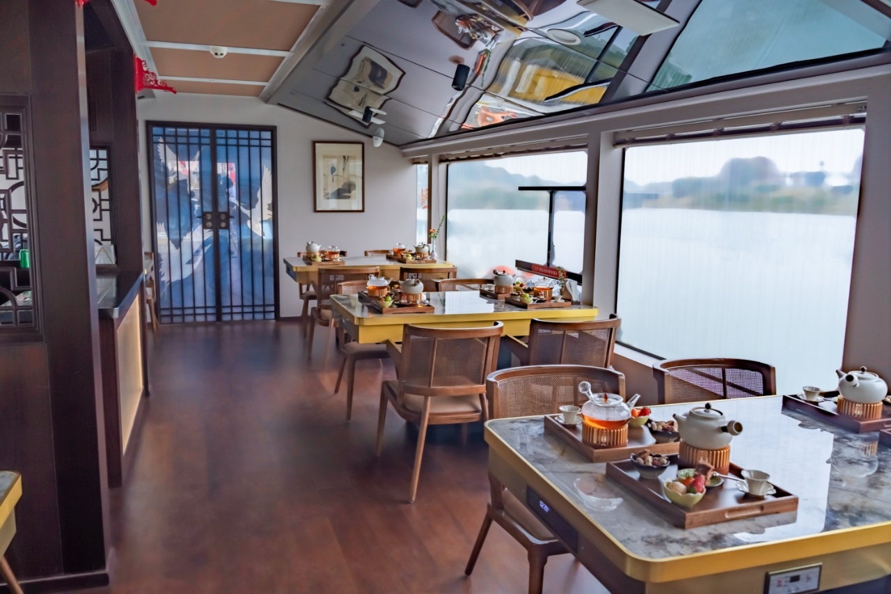新启航的夜游锦江城南段,还创新推出鹭栖茶室、鹭栖船宴两条特色主题游线产品供市民游客选择,以游船为载体,融合成都地道美食文化,在锦江之上打造一座流动的传统老茶馆、川味佳肴店,白天可在鹭栖茶室喝茶赏景,夜晚可在鹭栖船宴品尝地道小火锅,整个体验过程预计持续90分钟。
