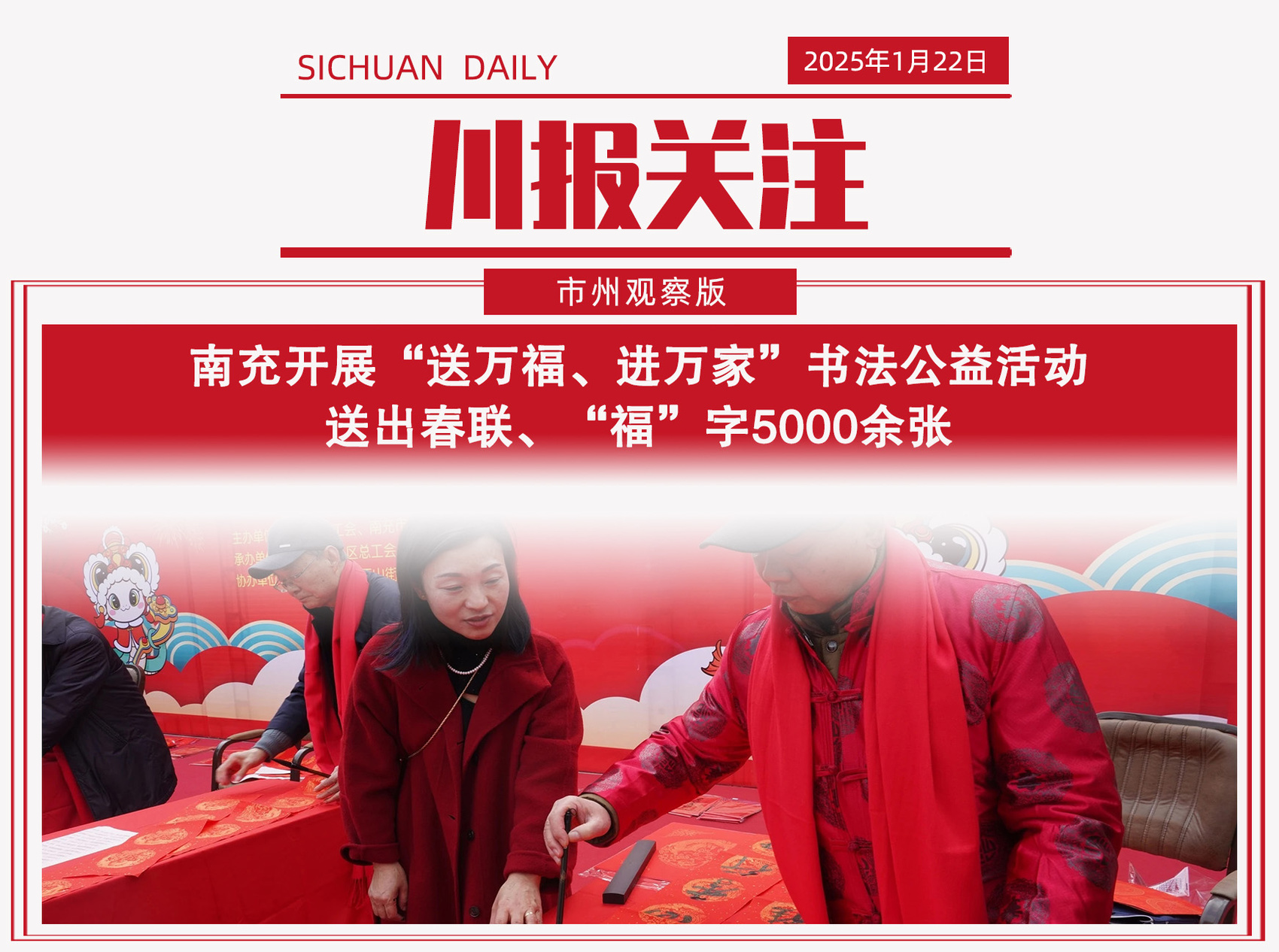 当前,南充市的各级工会陆续组织书法爱好者进企业、社区、商户、学校等地,广泛开展书法公益活动,让工会“娘家人”的关怀传递到职工群体。截至目前,全市各级工会现场已书写并送出春联、“福”字5000余张。