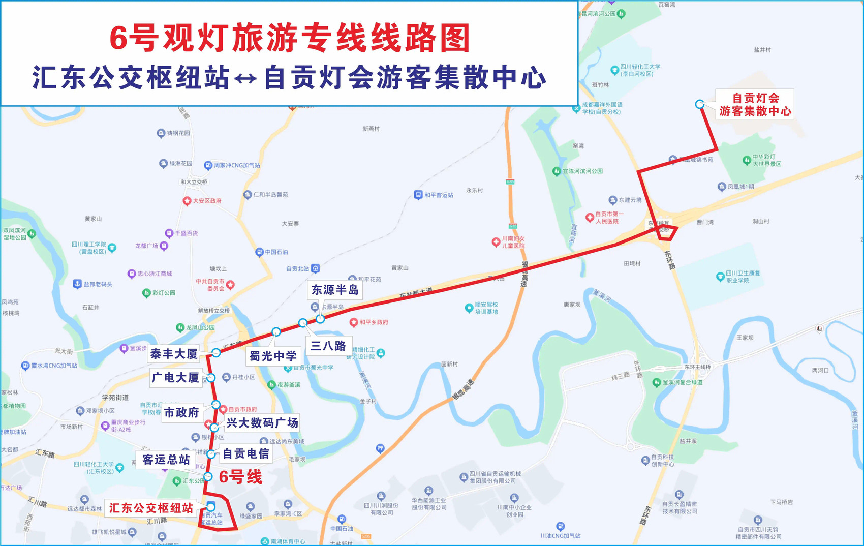 (一)6号线:汇东公交枢纽站↔自贡灯会游客集散中心