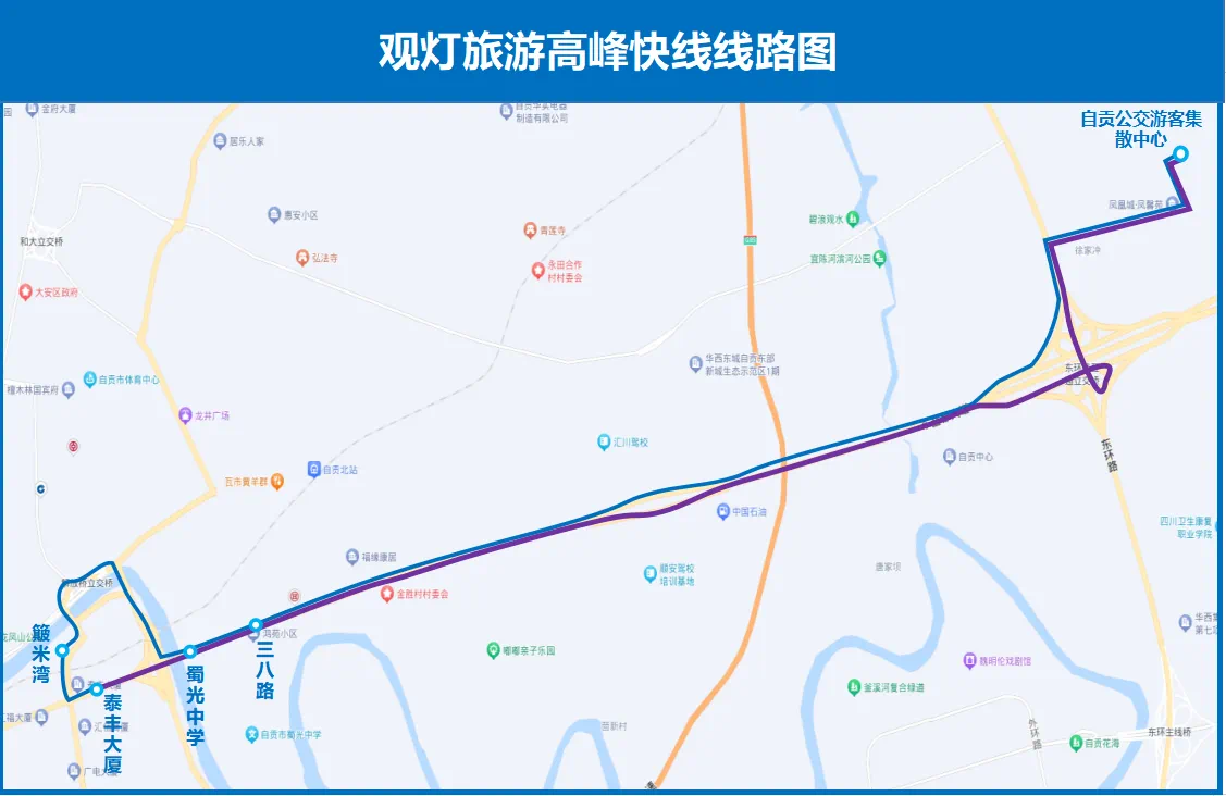 泰丰大厦↔自贡灯会游客集散中心直达区间快线。