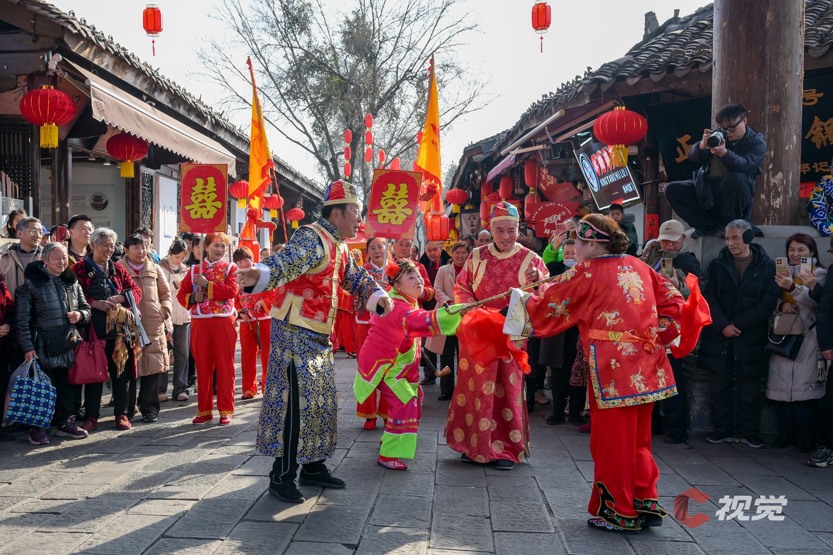 随着2025年春节的临近,阆中古城连续多日举办多种多样的民俗展演活动,古城里已处处年味,万人同品腊八粥、“春节老人”赐福、竹马牛灯、踩高跷、彩莲船等非遗民俗巡演轮番上演,游人们喜笑颜开,热情互动,一同迎接着新春的到来。