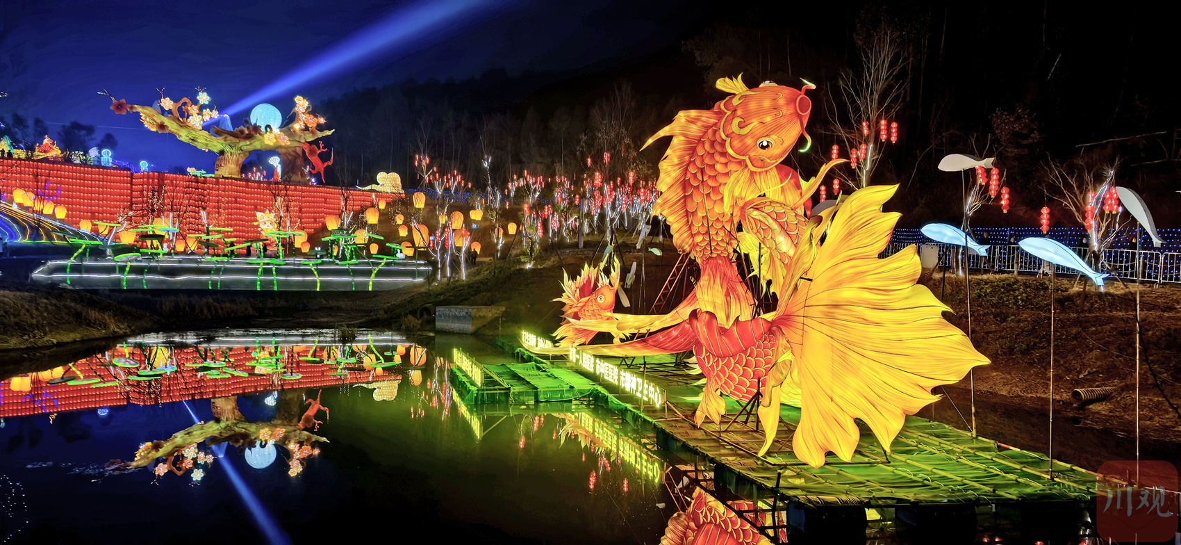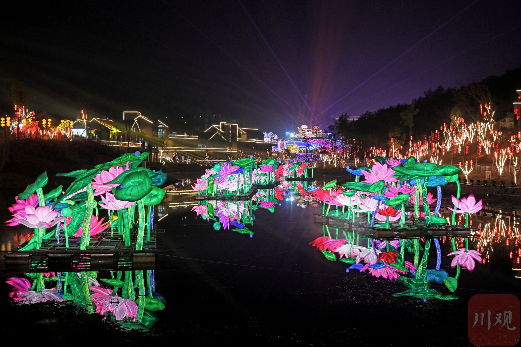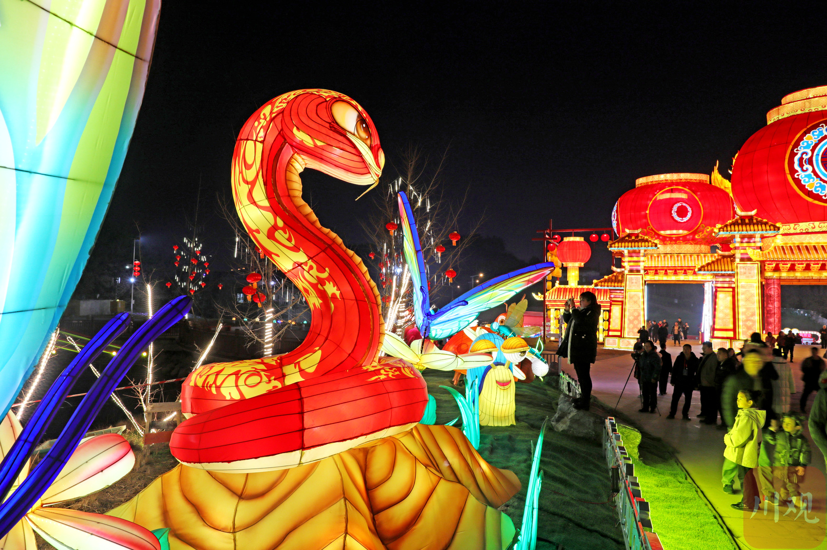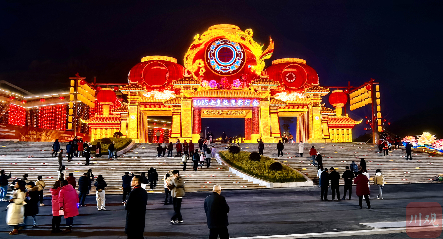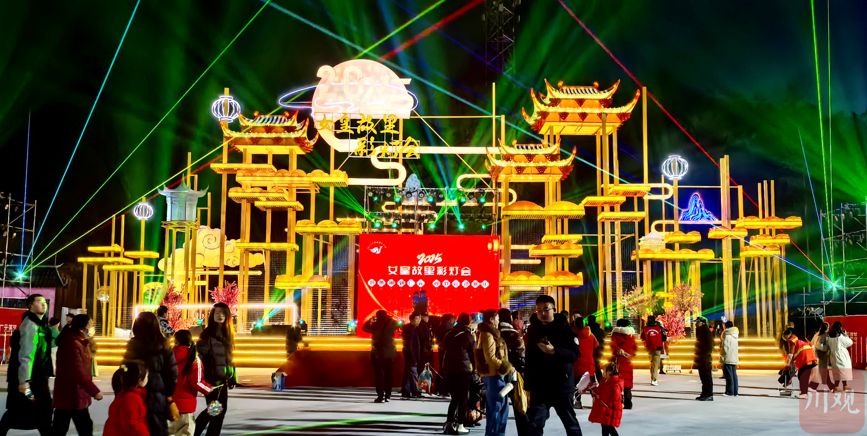 文艺表演、灯光秀表演、山体投影秀、激光表演秀……媚娘造妆巡游、国潮巡游、玩偶巡游……特色表演、以诗会友、汉服体验、特色美食体验……1月22日晚,广元市城区百草园,“2025女皇故里彩灯会”亮灯开园,万余盏各式花灯组成了独具创意的“灯海”。