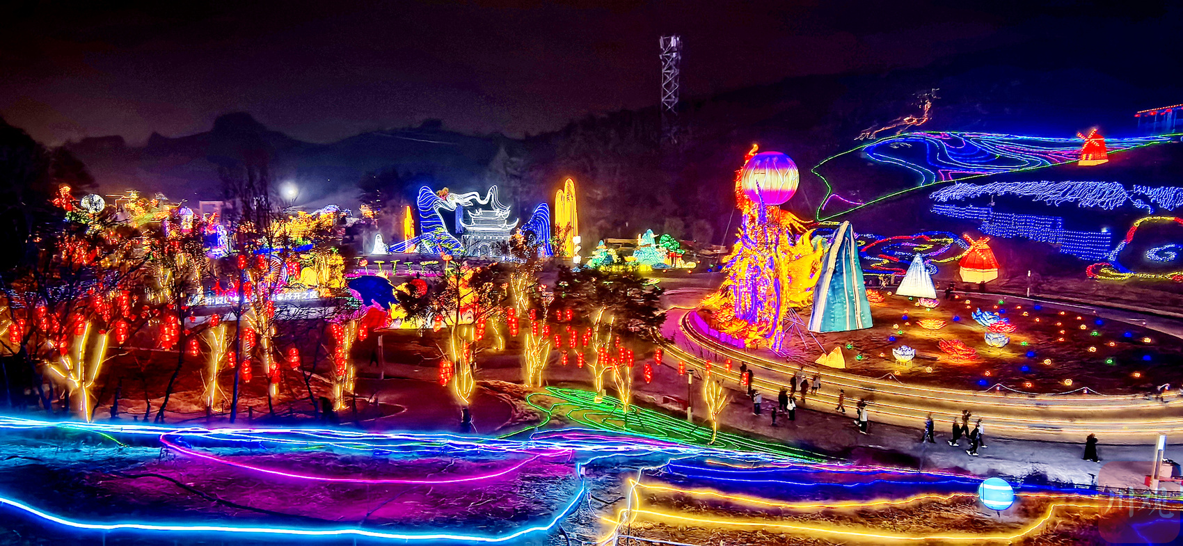灯会以现代科技灯光为主线,融合传统花灯、彩灯技术,以光影为笔、色彩为墨,铺装近6万平方米的“山水秀”、布置3万余支萤火虫流光灯,推出200米宽幅的大型山体灯光投影秀、水上灯光秀等表演,通过立体化展示手段,让流转千年的古风古意穿屏而出。