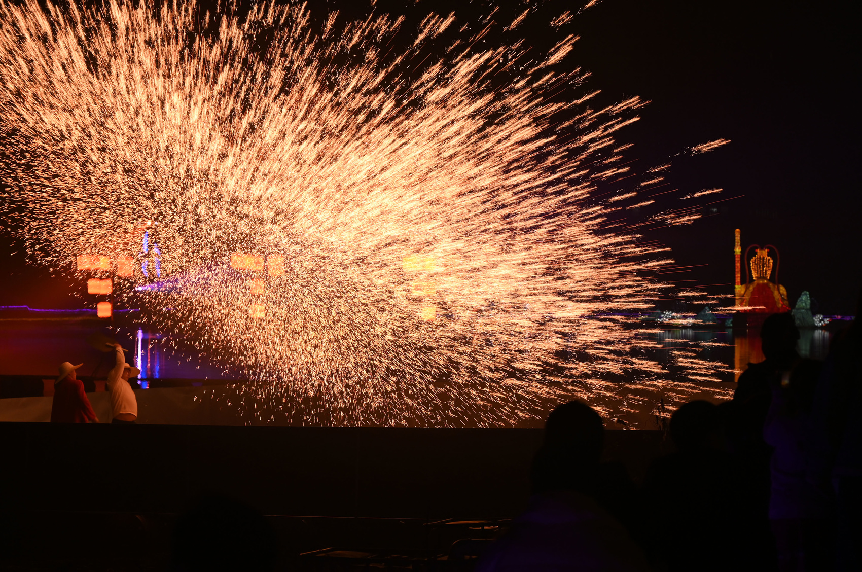 内江汉安湖新春灯会以“非遗过大年”为主题,将持续到2月12日,每天下午4点开园,除了赏灯之外,还有国潮飞天秀、非遗打铁花、皇家大马戏等看点。当天晚上8点30分,打铁花表演正式上演,铁水在工作人员的“抽打”下,像绚烂的烟花一样在天空中散开,引得围观群众发出阵阵赞叹之声。