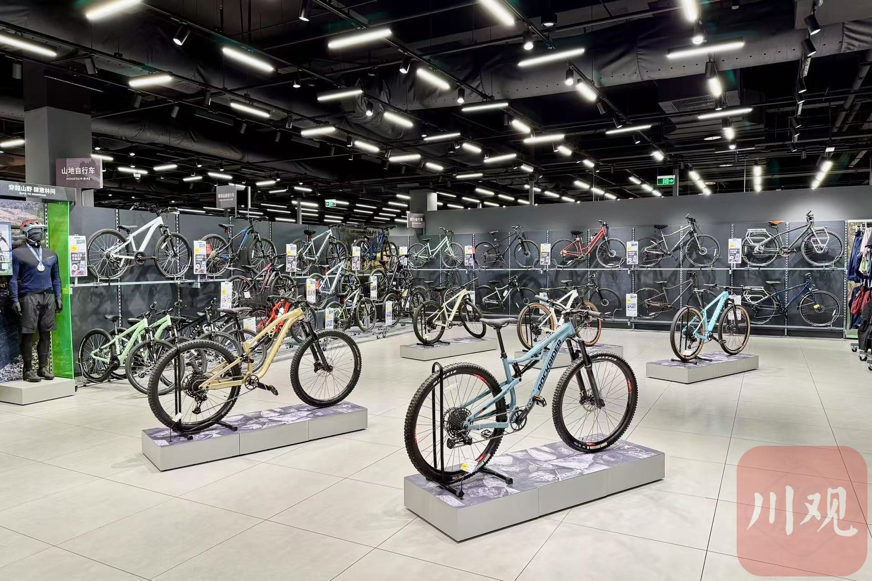 成都某体育用品门店内山地自行车展区。