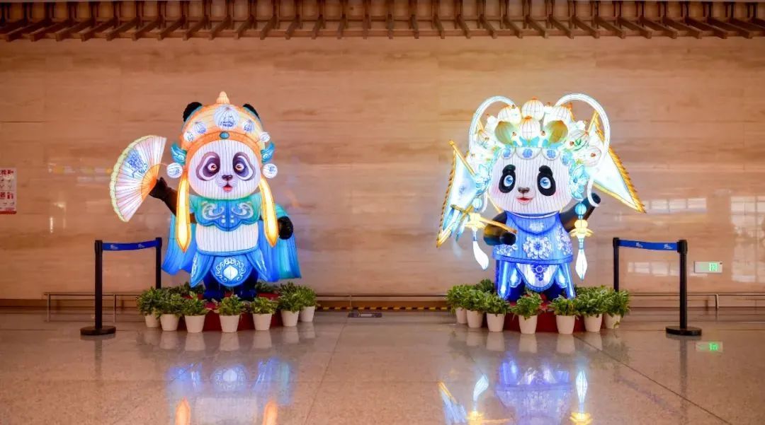 据悉,天府国际机场这场“限定版”彩灯盛宴,由9个主题特色灯组构成,工艺精湛、设计独特,融入“熊猫”“盖碗茶”等巴蜀文化元素,将四川的自然生态之美与人文生活之趣完美融合,勾勒出生动的四川风情画卷。