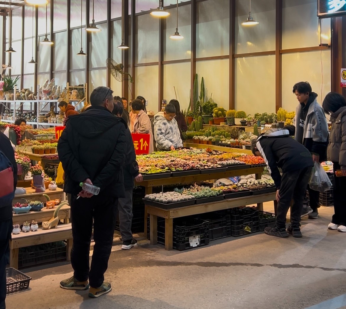 三圣花市内,顾客正在精心挑选心仪的多肉。