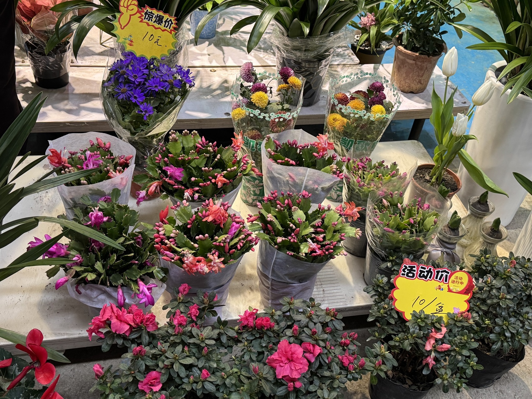 在热闹的年宵花市场中,今年整体花市价格呈现下滑趋势。不少店家反映,尽管各类花卉价格有所降低,但销量有所上升。