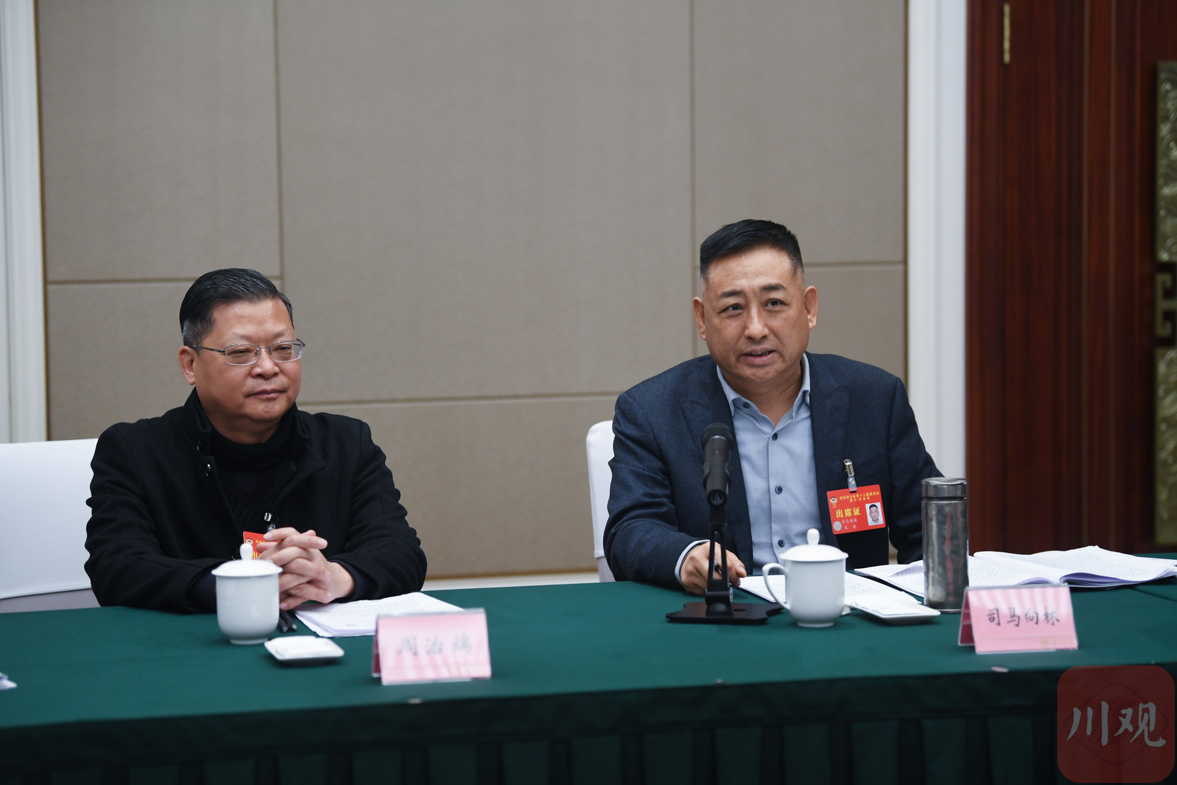 1月23日,司马向林委员(右)建议:要关注提高人民群众收入的措施和办法。