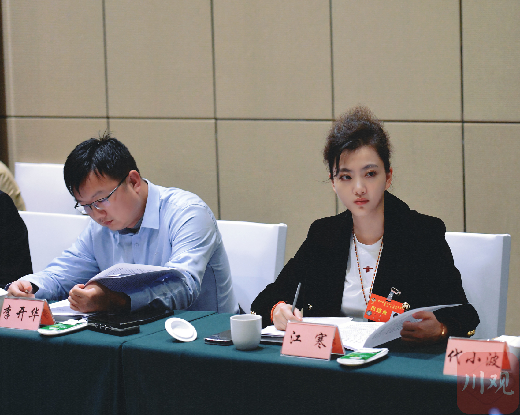 1月23日,江寒委员(右)建议,利用城市空置资源,结合青年生活、娱乐、休闲等多样需求,打造有利于青年发展的特色场所,在城市更新中为青年发展找到落脚点。