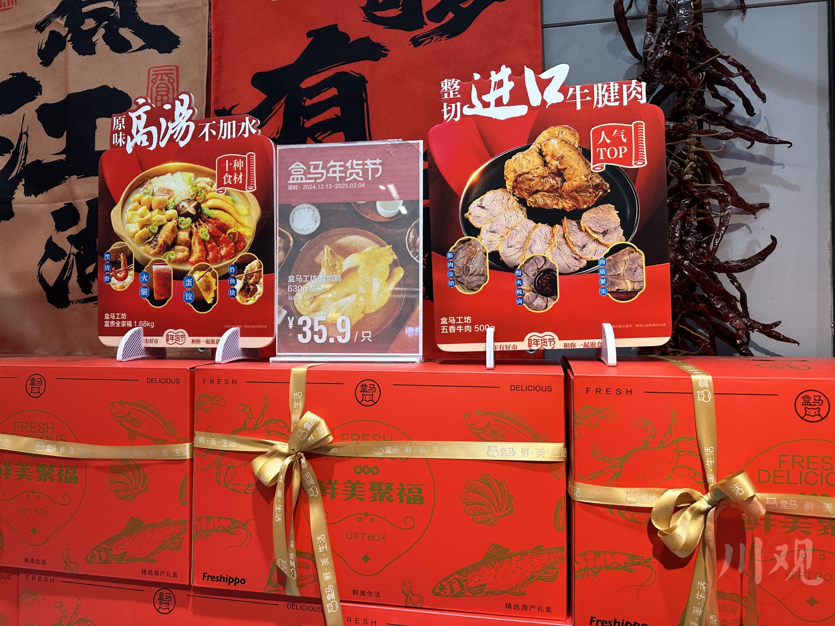 值得一提的是,今年成都的许多五星级酒店和餐饮连锁企业也相继推出了年夜饭预制菜套餐,让消费者在家中也能轻松制作出丰盛的年夜饭。记者走访成都各大超市发现,预制菜礼盒的铺货占比进一步提升,预制菜和半成品菜已成为年夜饭市场的重要组成部分。