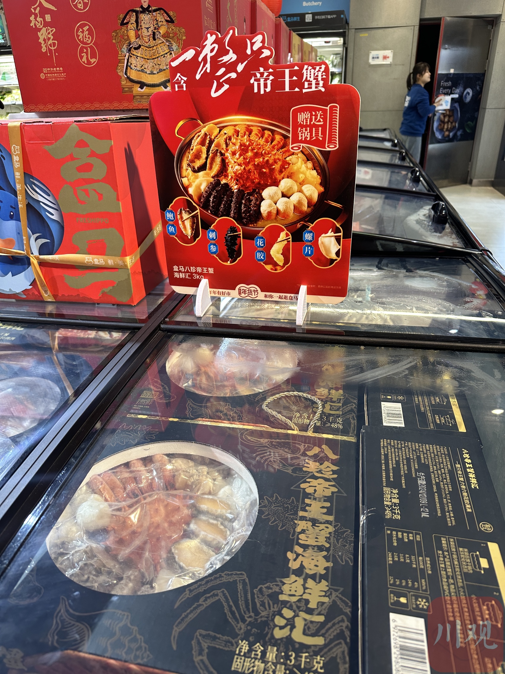 23岁的成都市民闻女士为了在团年饭上展现自己的“厨艺”,特意挑选了一款价值579元的八珍帝王蟹海鲜汇礼盒。这款礼盒内容丰富,包含一整只帝王蟹、6只海参和6只鲍鱼,“这下年夜饭的硬菜就有了,而且只需简单加热即可享用,真是太方便了。”