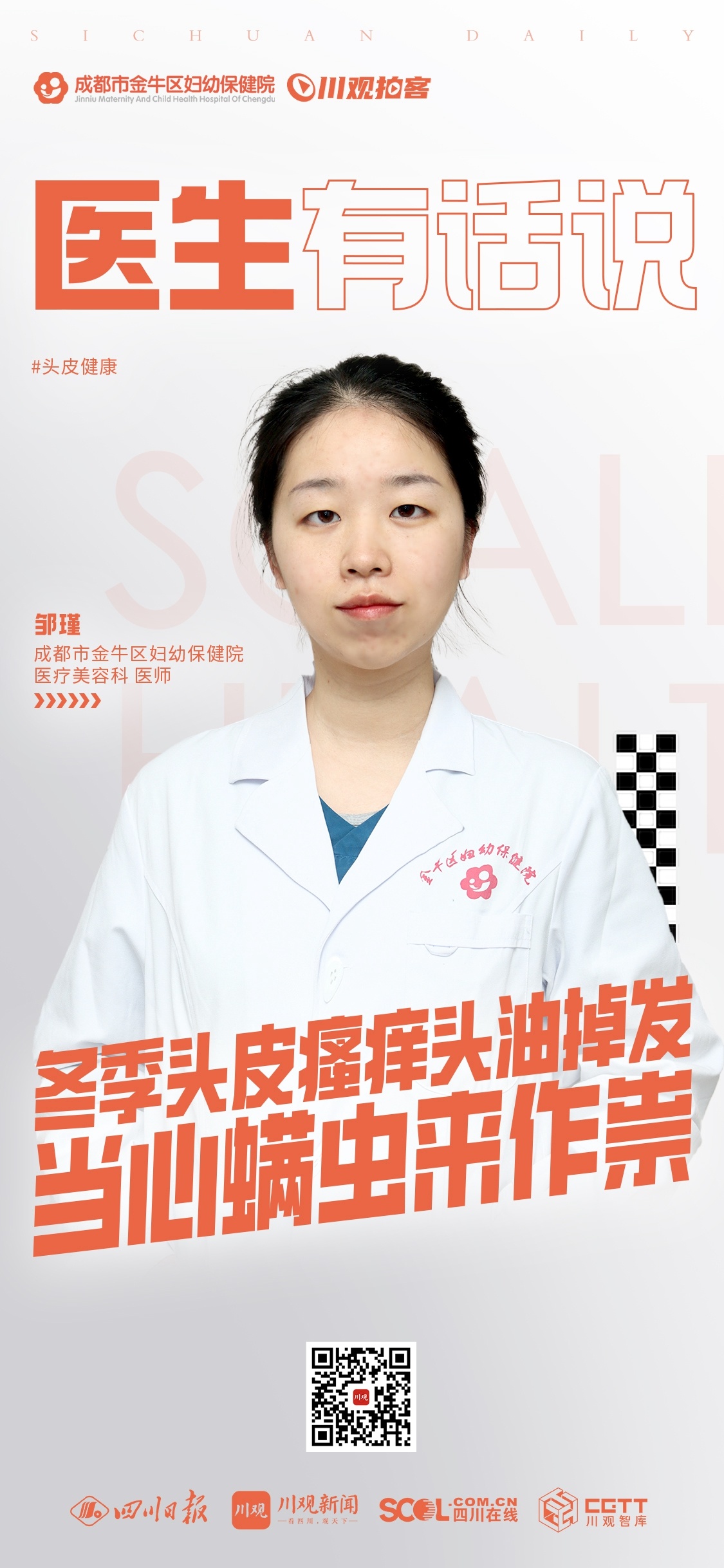 本期栏目,来自成都市金牛区妇幼保健院医疗美容科的邹瑾医生,就跟大家聊一聊什么是头皮螨虫,头皮螨虫会有哪些症状,以及如何防螨除螨。