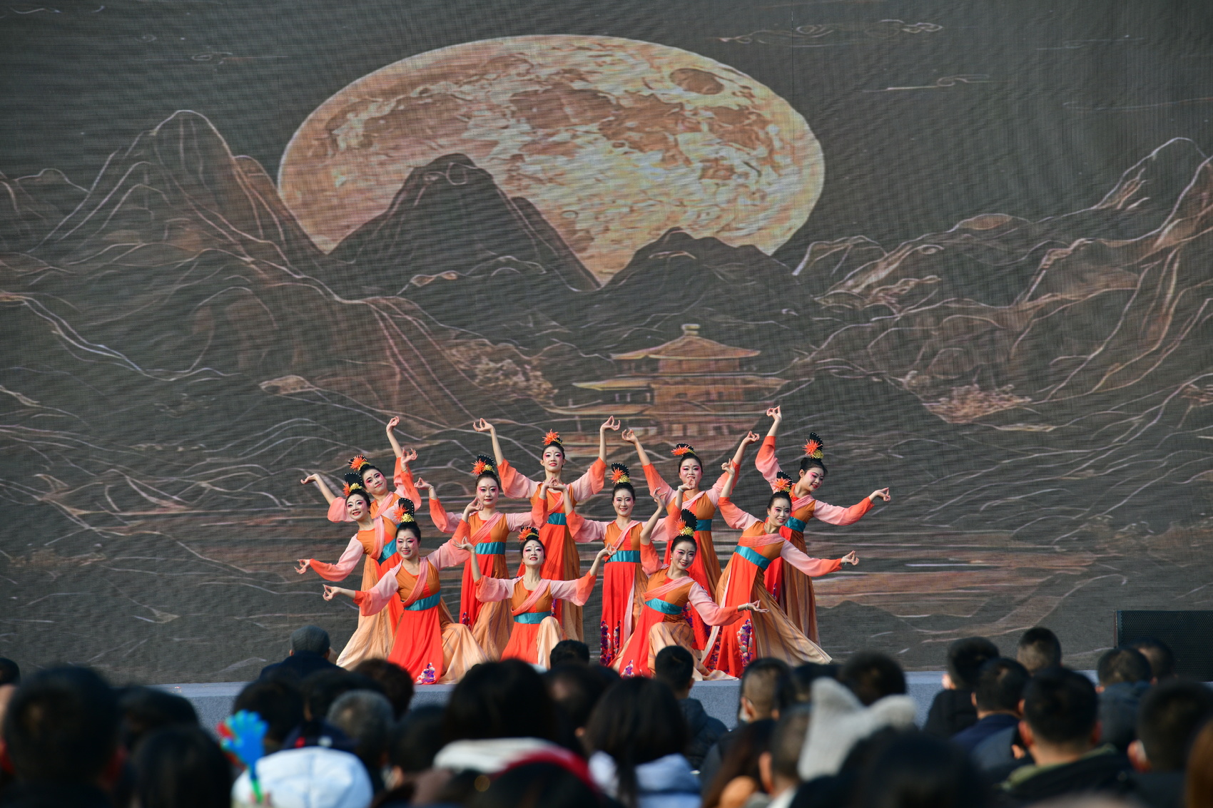 舞台上文艺演出不仅奉上视听盛宴,同样传递奋发向上的精神力量。如,歌曲《灯火里的中国》、女子群舞《英姿》展现了新时代里一幕幕奋斗画卷,表达了人们的欣喜自豪之情,对未来生活充满希望与信心。