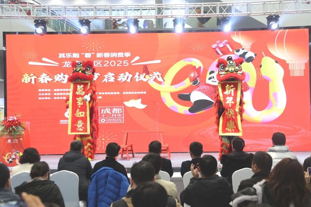 1月23日,其乐融“蓉”新春消费季——龙泉驿区2025新春购物节开幕。今年春节,龙泉驿区商务局、区文广体旅局、东安街道发挥政府、企业、社会联动作用,组织辖区企业推出汽车以旧换新、手机数码产品促消费优惠、服饰年货等各类商品优惠,共同送出价值6000万元的新春大礼包,为广大消费者带来一场充满年味的购物盛宴。