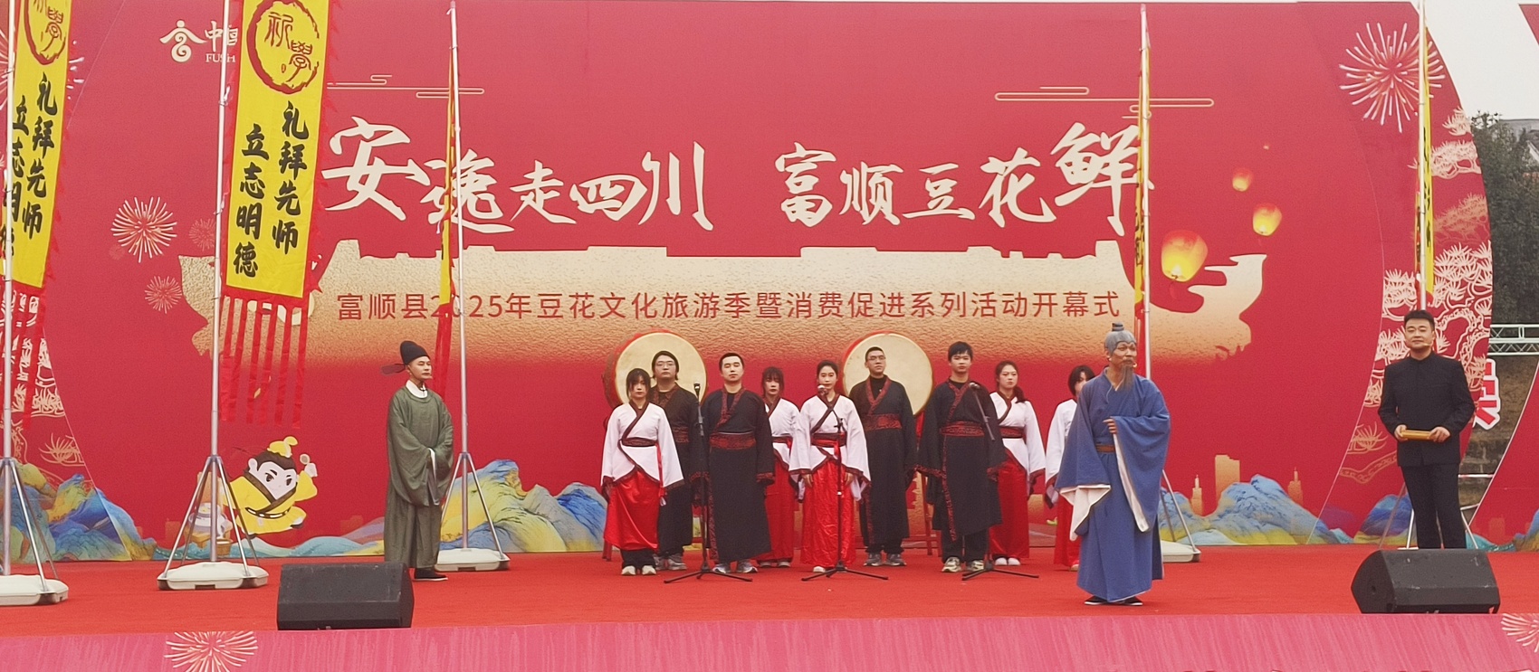 开幕式上,情景表演《传承》让明朝富顺才子晏铎跨越时空回到富顺感受才子文化,戏曲舞蹈《一抹天仙》展现出穆桂英英姿飒爽的女将风范,《街舞迎新春》《铃儿响起人欢喜》《沱江·恋》等节目将现场气氛推向了一个又一个高潮。
