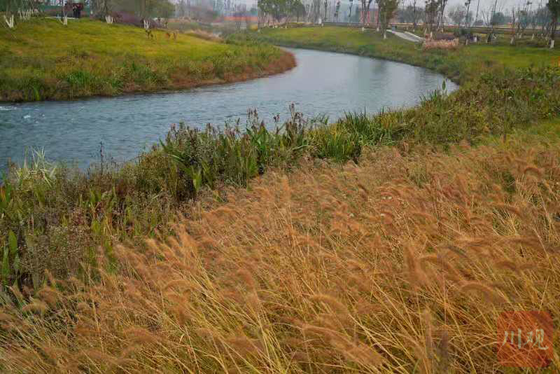 12月24日,成都市青白江区长流河公园,清澈河水缓缓流淌,岸边芦竹、鼠尾草等点缀其间,颇有野趣。尽管天气不算晴朗,还是有不少市民在两岸的绿道上散步休憩。