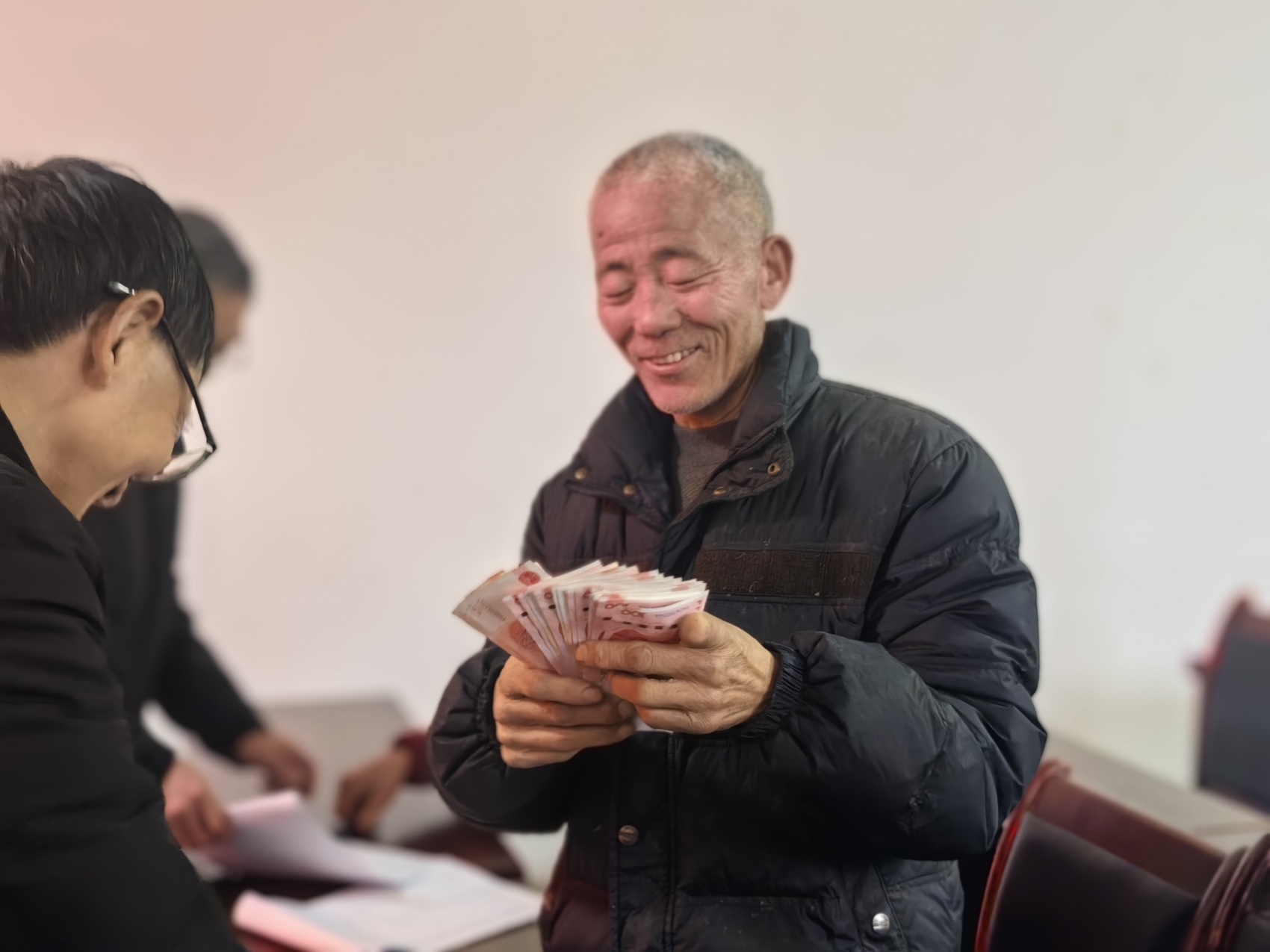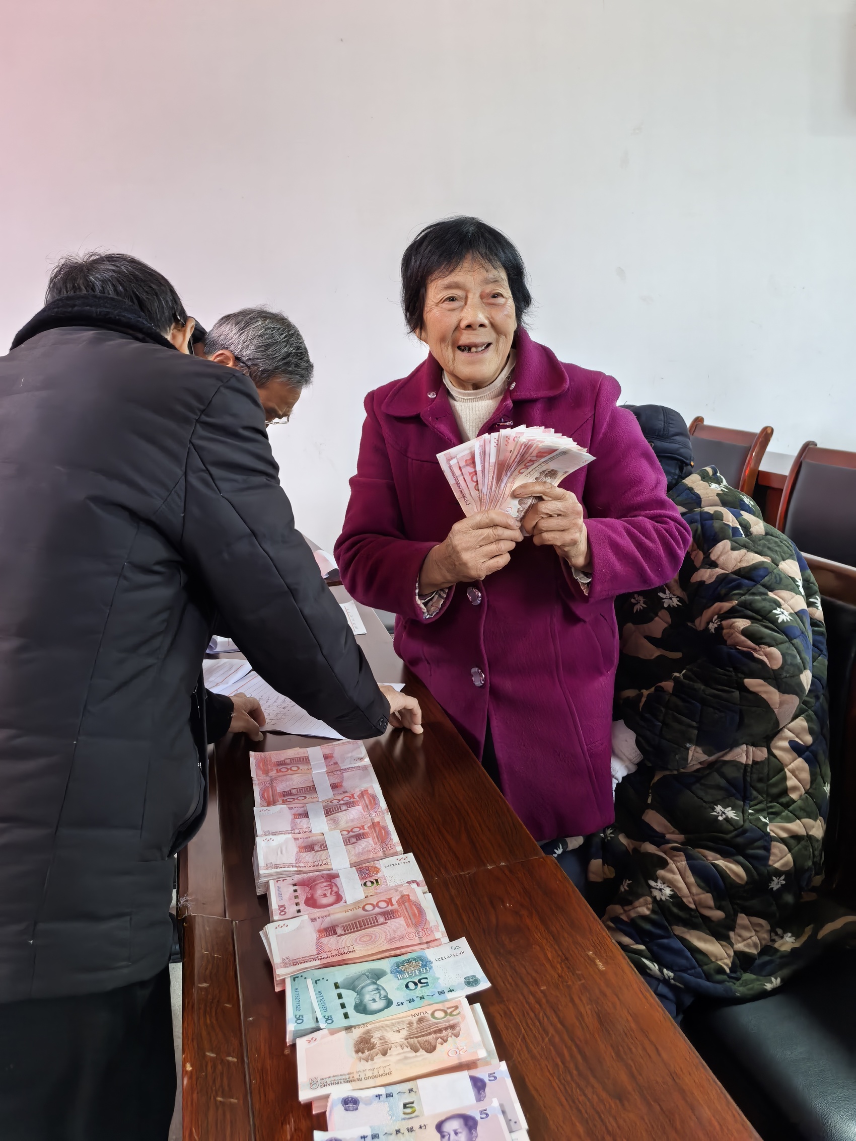 分完油,接着进行劳务工资的分发。13万元现金摆上桌面,集中支付给去年为村集体产业劳务的村民。“领了3280元。”村民杨万秀原先在城里带孙子,没想到回老家在村里就有活干能挣钱,“这下可以过个‘肥年’了。”