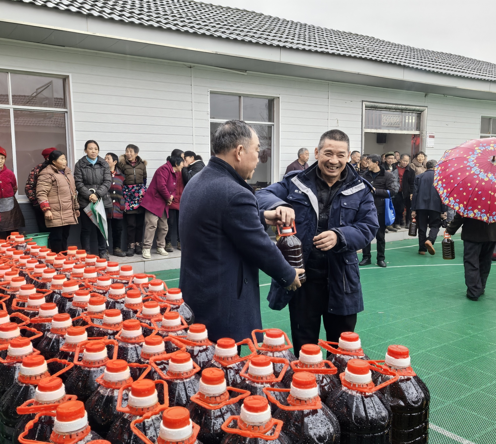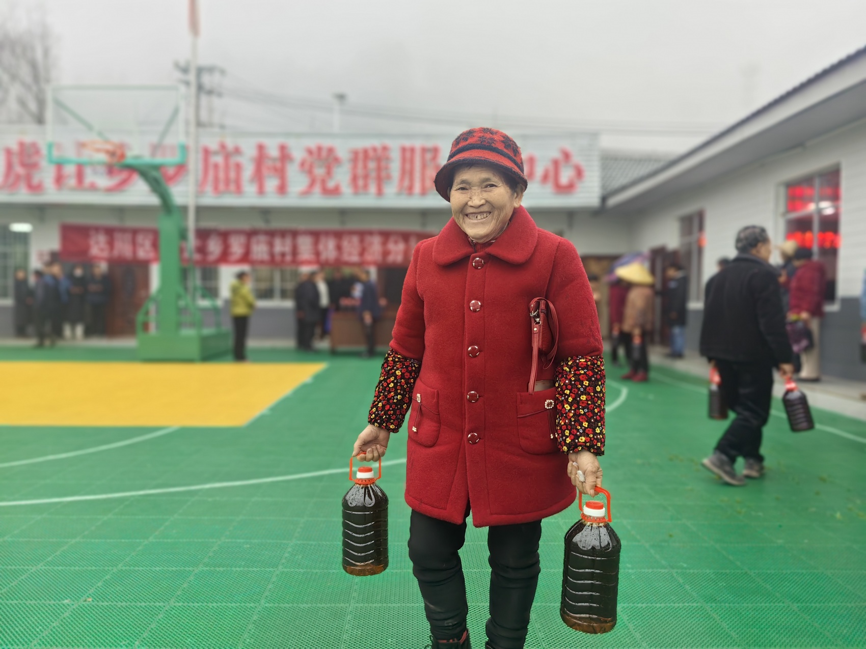 “念到名字,就上前一步来领油。”1月24日上午,虎让乡罗庙村党群服务中心院坝里围满了人,村党支部书记杜丕泽高喊了一嗓子。他手拿花名册,手边是六纵列整齐陈列的100余桶菜籽油,身前聚拢的100余名村民,是这些菜籽油的“主人”。