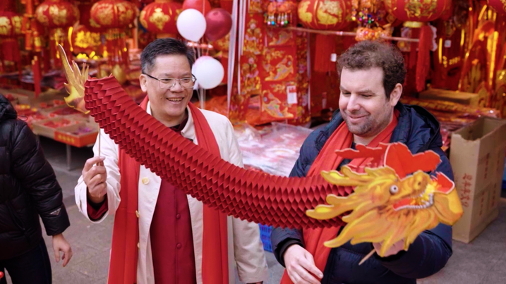 另一边,智利总领事和泰国总领事正在成都荷花池买买买。原来,团圆的氛围离不开年货的采办。“福”字怎么贴,红包发多少,两位总领事甚至为全球网友科普了中国春节的民俗与禁忌,太有实力了。
