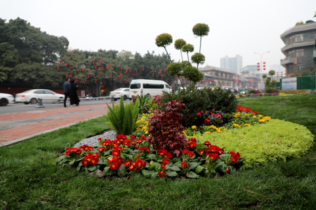 在春节来临之前,武侯祠大街、通祠路、浆洗街跨线桥等13条道路、16个点位补栽更换了花卉绿植。“此次主要选择超级一串红、杜鹃、矾根、红花继木球、金叶女贞球、小报春、羽衣甘蓝等,共补栽替换花卉植物8510㎡、9.8万余株,让街头呈现姹紫嫣红的新春气象。”武侯区公园城市局相关负责人表示,接下来将持续做好花卉管养工作,让鲜花在春节期间以最美的姿态呈现在市民眼前,为城市增添亮丽色彩。