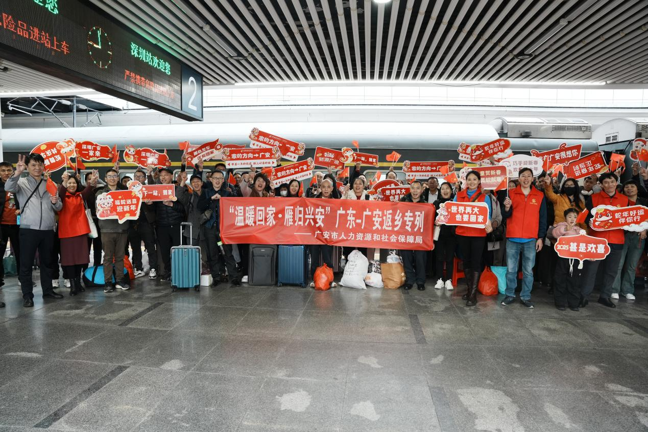 一张车票,一抹乡愁,随着春节临近,一趟趟列车满载思乡之情,让外乡“奋斗者”返乡阖家团圆、共叙亲情。为方便广大返乡人员“赶路”,广安市推出2025年“温暖回家·雁归兴安”返乡服务十大行动,其中包括开行广东至广安免费专列。这趟专列于1月25日上午9时48分从深圳站启程,途经广州北站。