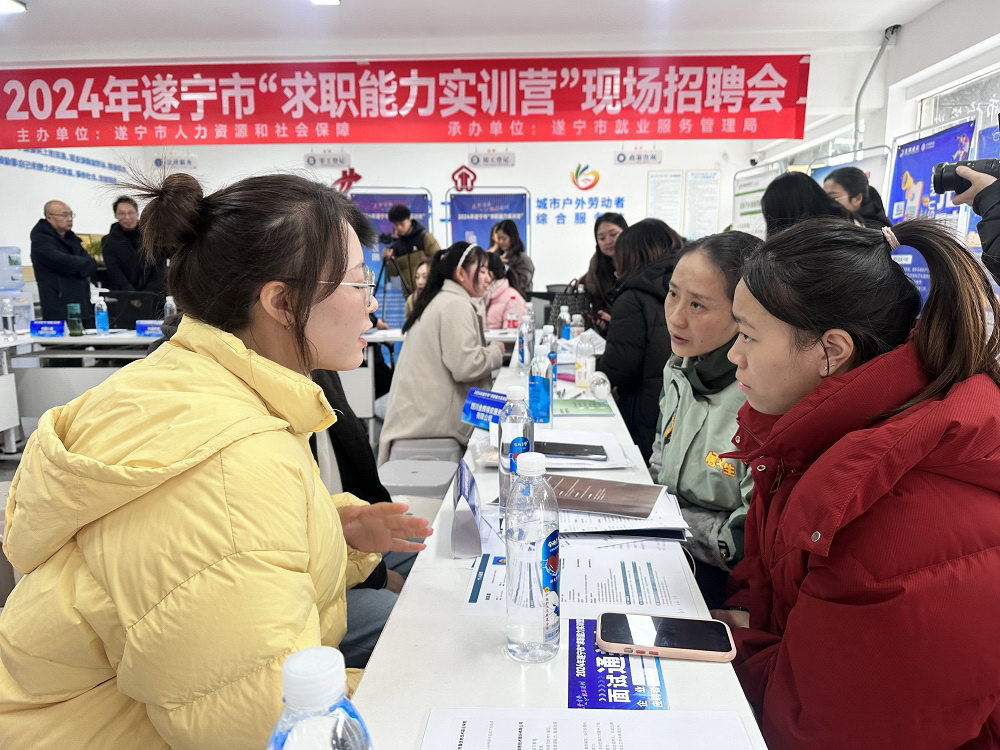 “求职能力实训营”招聘会,助力参加实训的年轻人寻找工作。(省就业局供图)