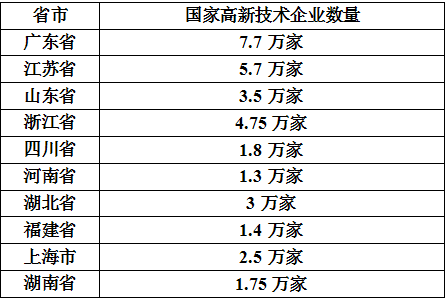 其中,排名前5的是:广东7.7万家、江苏5.7万家、浙江4.75万家、山东3.5万家、湖北3万家。
