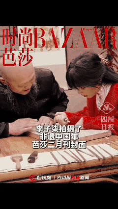 近日,李子柒带着四川非遗上杂志了,拍摄了非遗中国年芭莎二月刊封面。在拍摄中,李子柒跟着夹江年画国家级非遗代表性传承人张荣强学习制作年画。