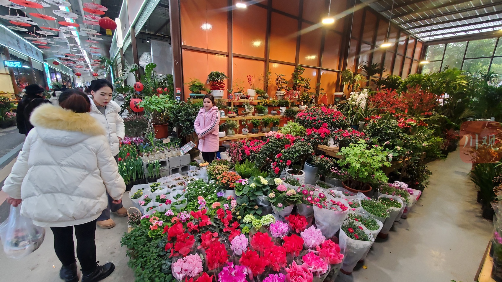 1月28日,除夕当天,到处都是浓浓的年味。三圣花市人头攒动,选购年宵花的市民朋友络绎不绝。