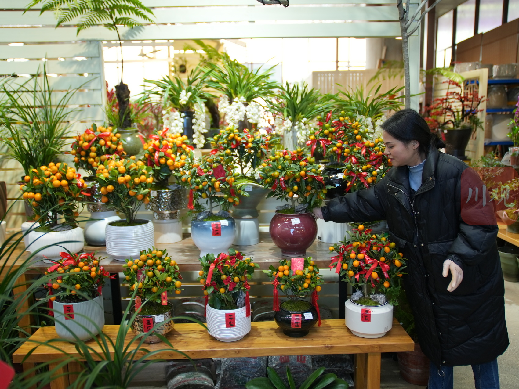 一些既好看又“实用”的花卉也很受市民青睐,半小时的时间,商户綦李燕店里的金桔被挑走了好几盆,“金桔有金灿灿的果实,又好看又好吃,寓意招财进宝,讨个好兆头。”