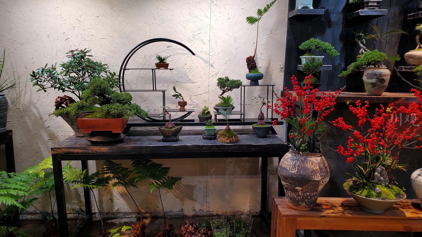 除了用作装饰的花卉,年底也是盆景的销售旺季。