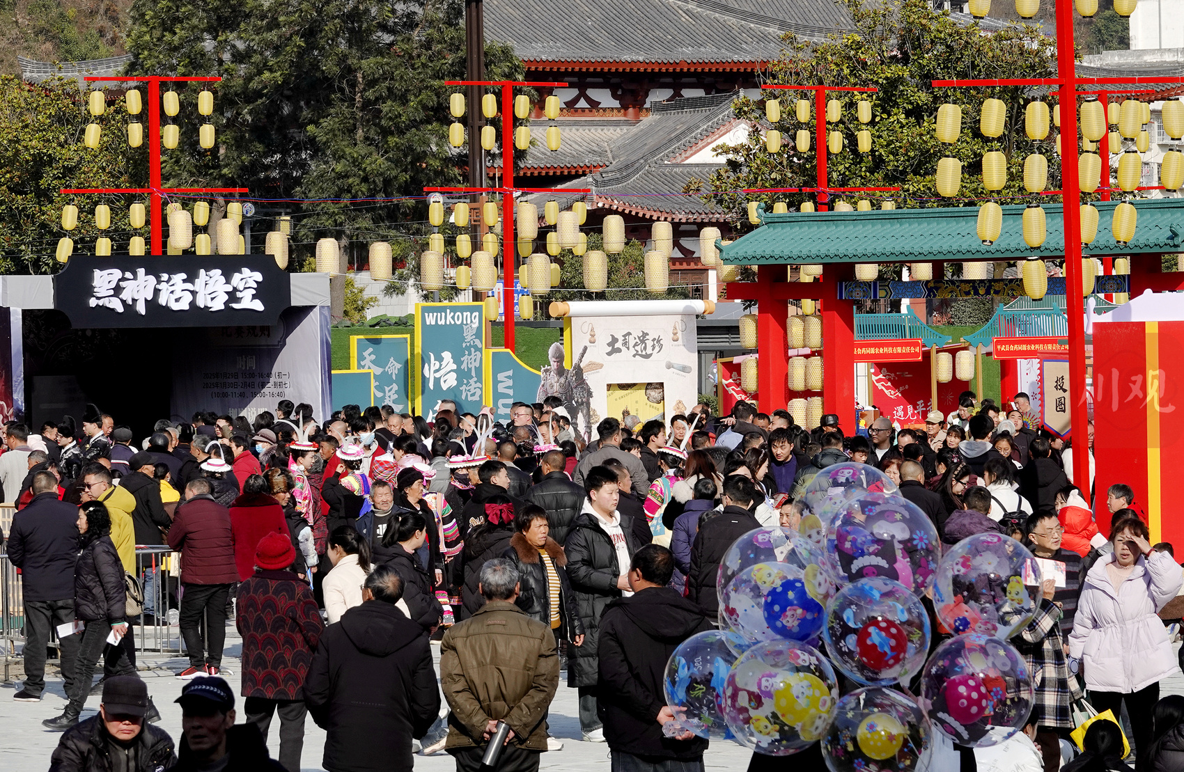 龙腾狮舞、灯火璀璨、流光溢彩……蛇年新春,1月29日,绵阳市平武县“遇见平武梦回明朝”春节民俗文化活动精彩上演。报恩寺开山门仪式、锦衣卫巡游、大明盛世国风舞蹈快闪、《黑神话悟空》闯关游戏挑战赛、集章打卡、西城报恩里民俗文化展演等活动精彩纷呈,八方游客在多姿多彩的文化活动中欢度佳节,感受活力满满、热气腾腾的中国年。