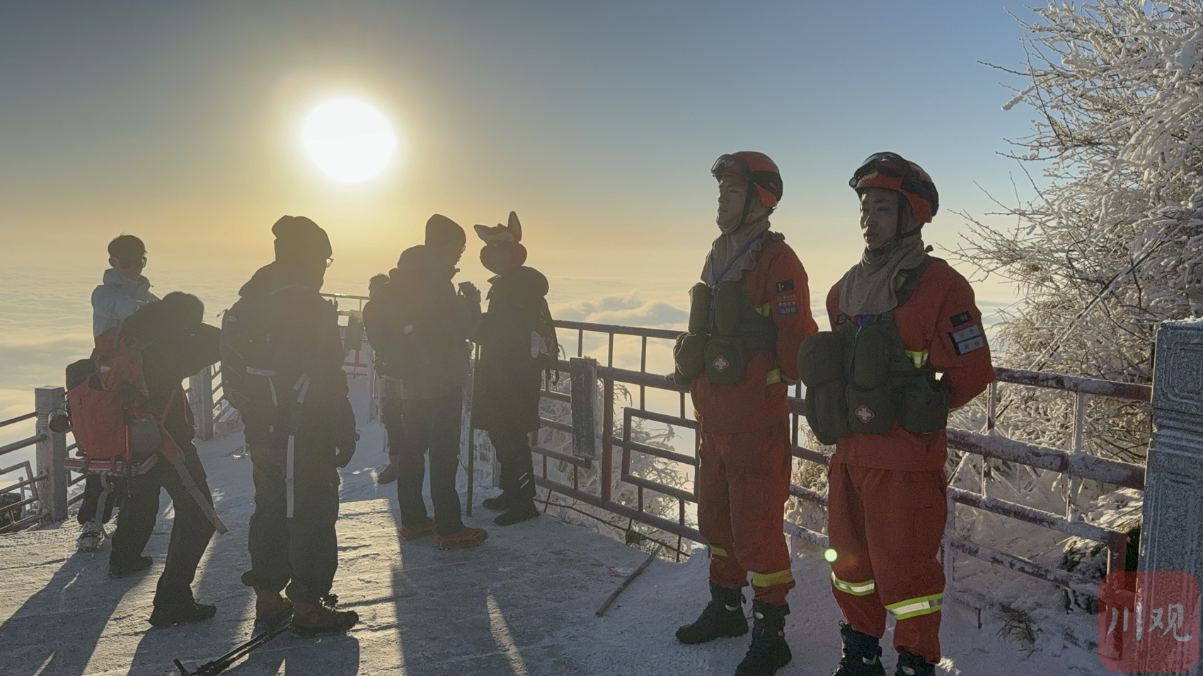 报国寺后的步道是前往金顶的必经之路,因降雪积冰,消防员在巡护时清理险要路段,为登山游客护航。消防员称 “群众过节我们过关”,定会全力履职,守护景区。他们坚守岗位,和游客共迎新春第一缕曙光。