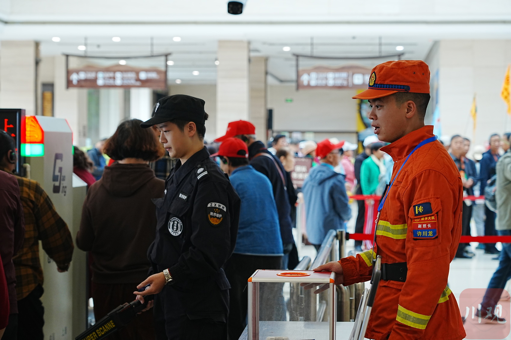 三级消防长张大雄率队员在各景点值守,排查林缘、栈道隐患,制止危险行为。在景区入口,消防员引导游客上缴火源,严守安全关。